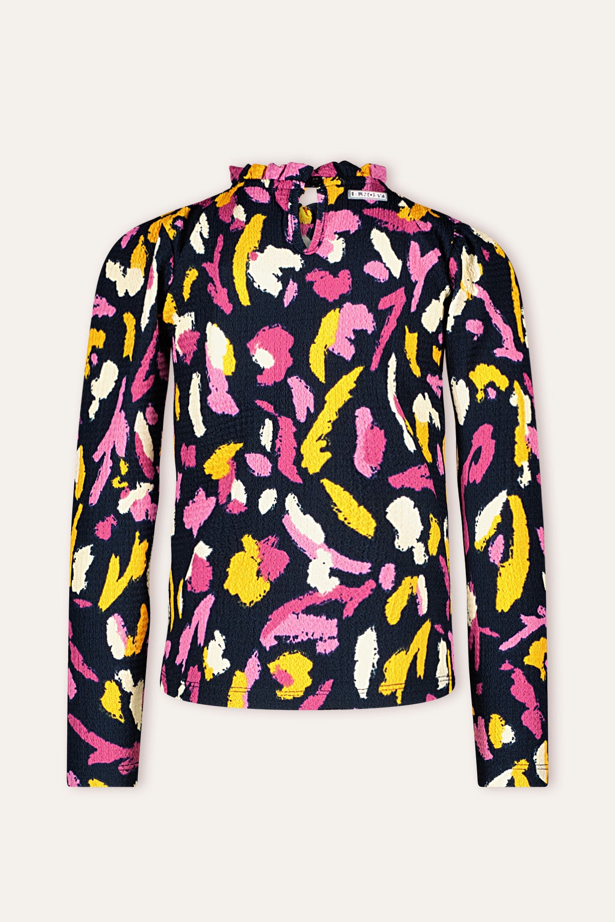 Deze print valt meteen op! Dat is wat deze blouse zo leuk maakt, maar vergeet ook zeker de vrolijke ruffles aan de kraag niet. De blouse is niet alleen mooi, maar zit ook heerlijk.