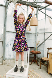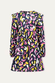 Jurk Filiz heeft een leuke allover print. De jurk is afgewerkt met ruffles op de schouders en een elastiek bij de mouwen en taille. Deze details maken het jurkje helemaal af!