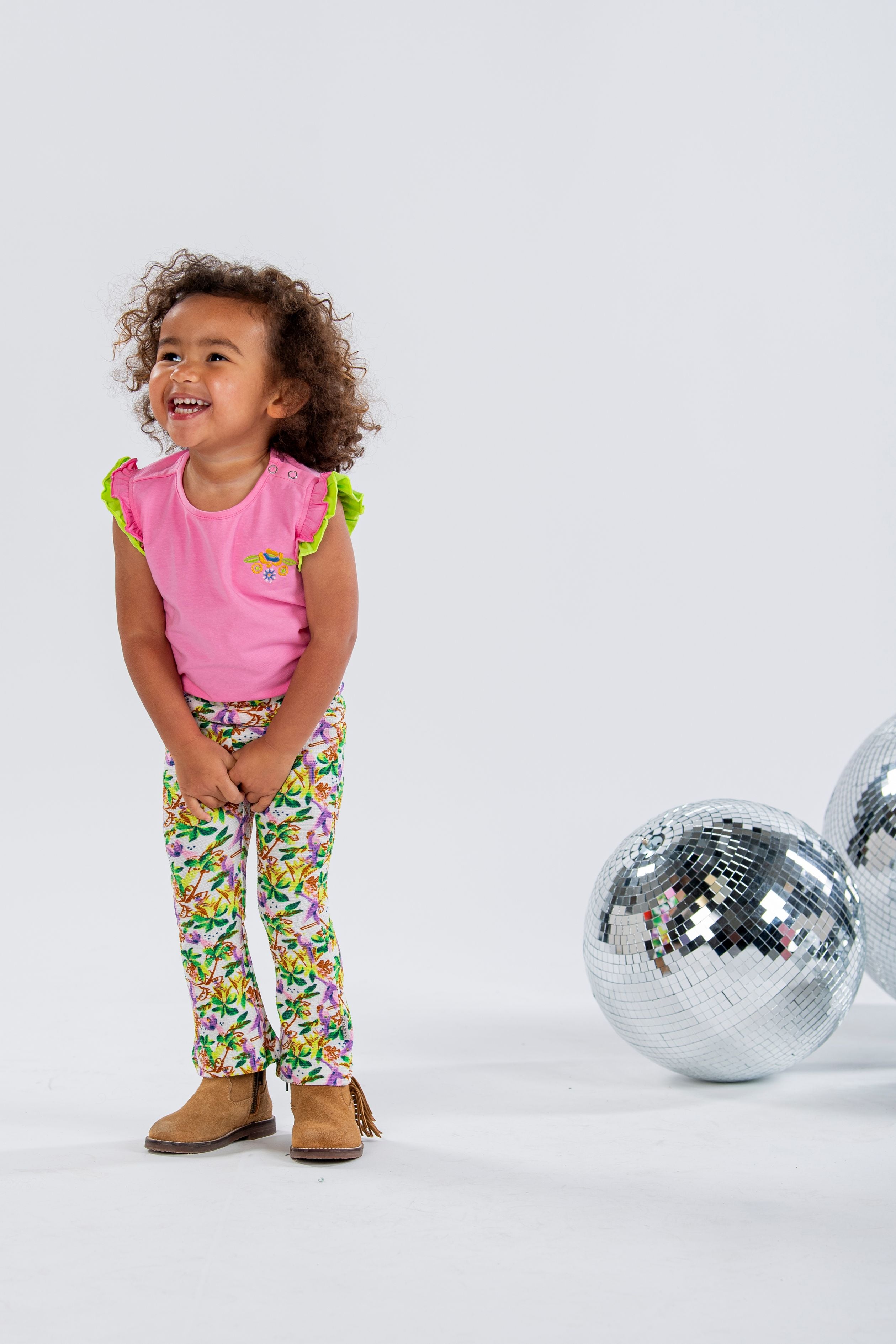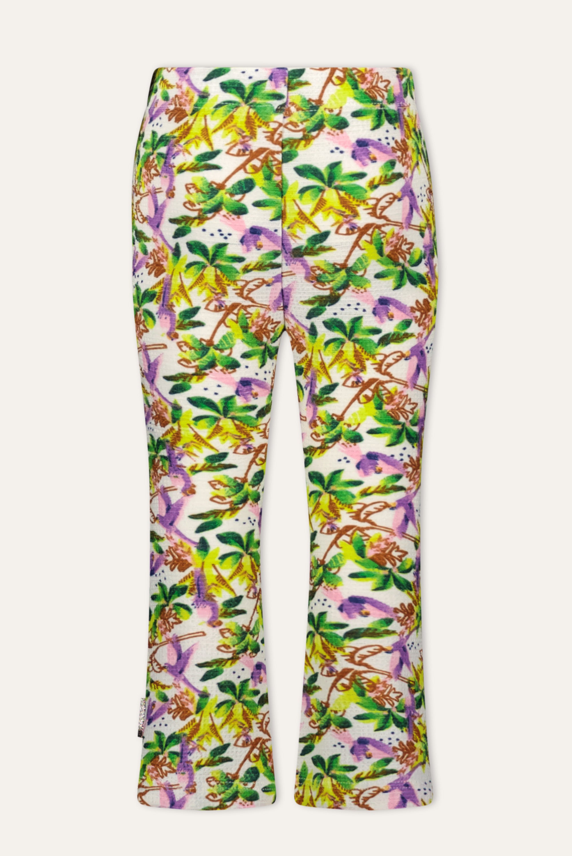 Ben je helemaal gek op flared broekjes? Dan zal je ook deze fijne stretchy flared met vrolijke tropische print een topper voor je worden. Gillian is gemaakt van gerecycled polyester