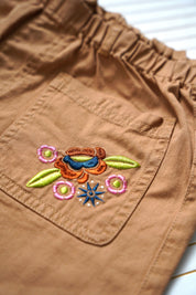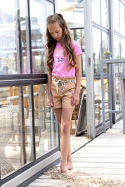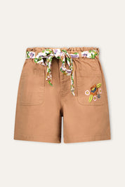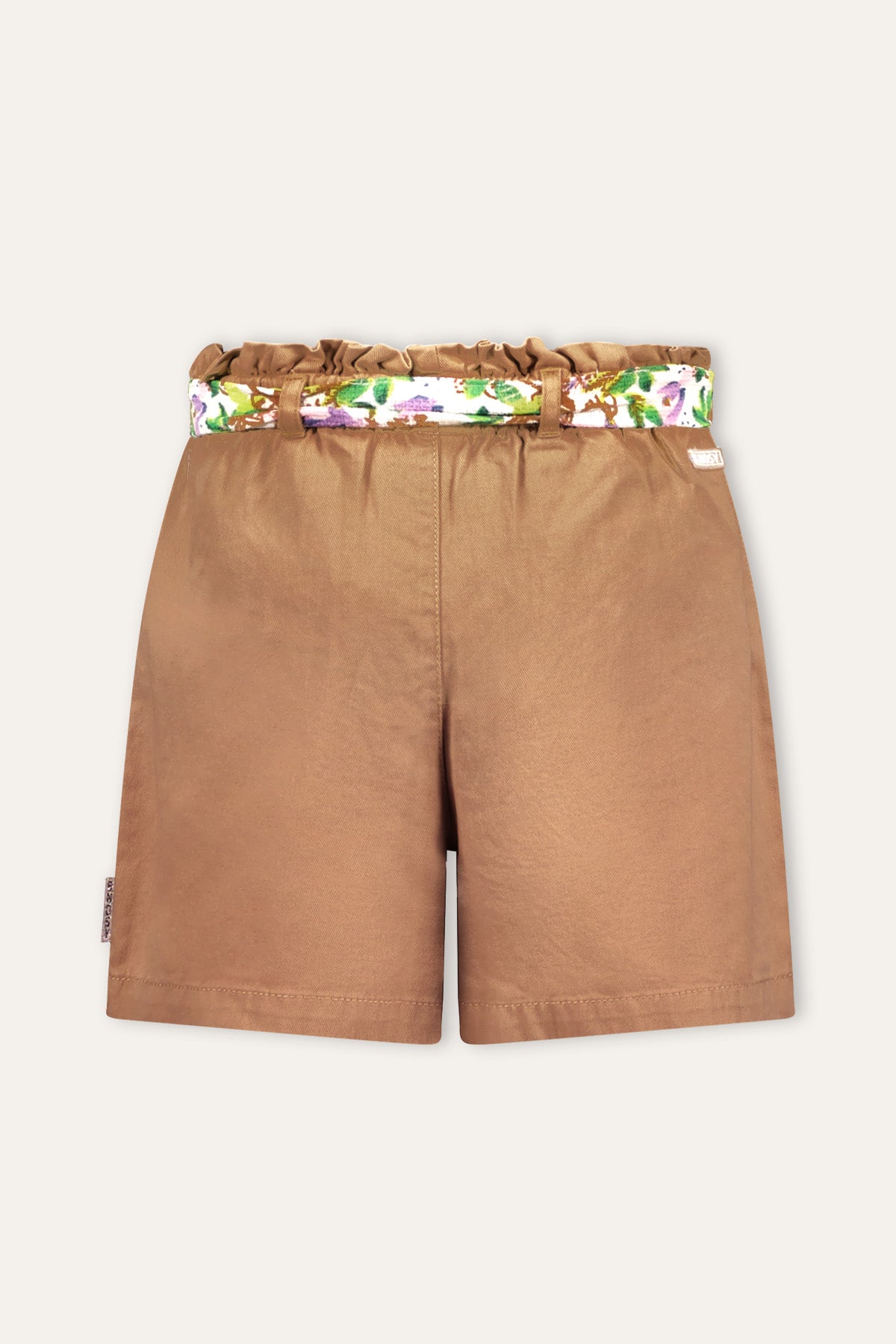 Gioya is een wat wijder model kort broekje. De licht bruine twill stof bevat een beetje stretch en is lekker licht, waardoor het een ideaal shortje wordt voor de warmere dagen.