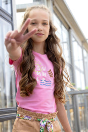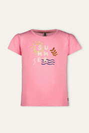 Ieder jaar wil je weer veel van dit soort fijne t-shirtjes in je kast hebben hangen. Een mooi kleurtje met een zomerse print. Dit t-shirt is GOTS gecertificeerd
