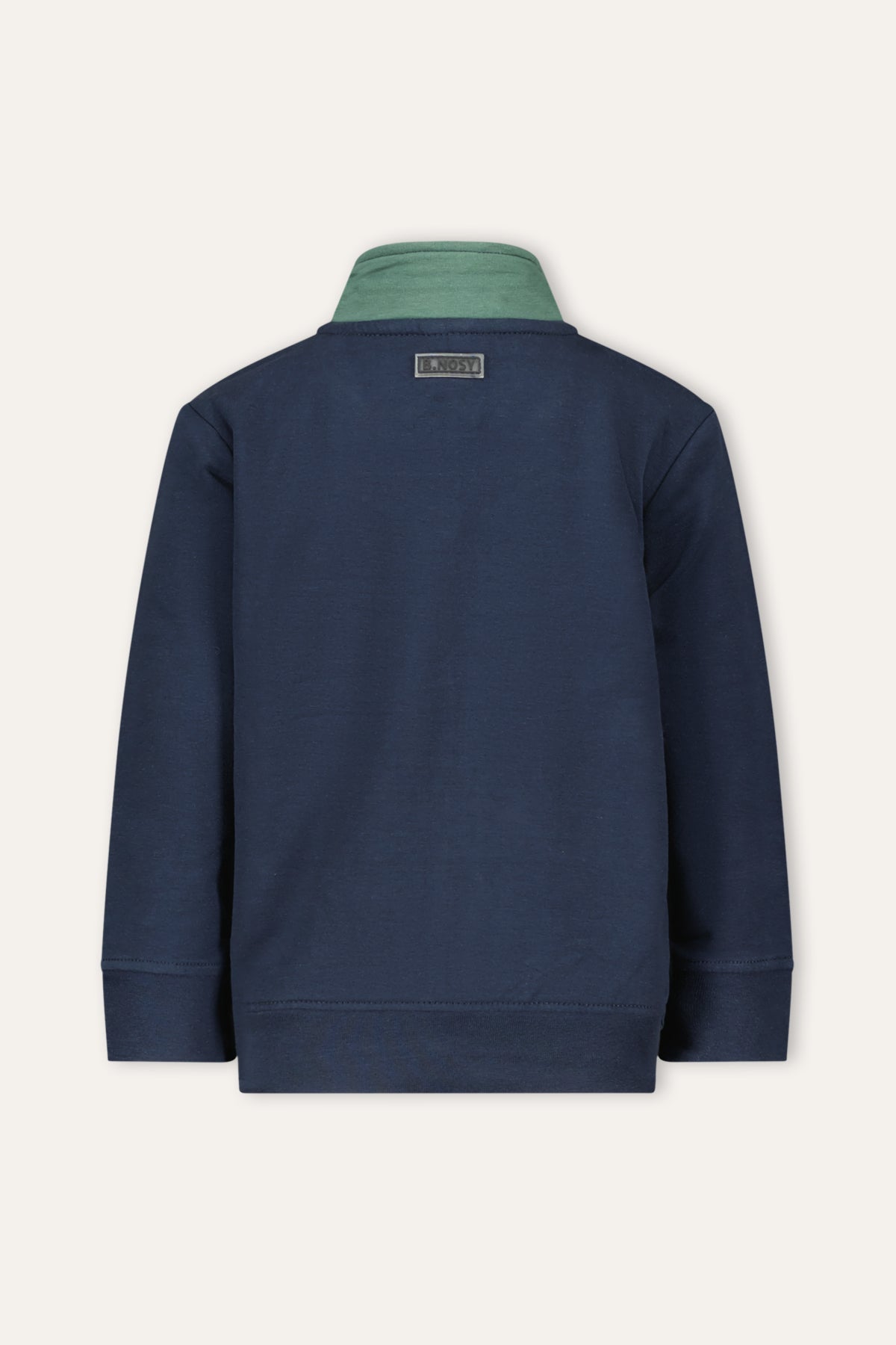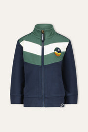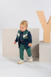 Greg wordt jouw mini's nieuwe favoriet. Dit sportieve navy sweat vest heeft witte en groene contrast strepen in een V-vorm. De ristsluiting zorgt er voor dat je het vest gemakkelijk aan en uit doet! De toffe zomerse badge op de borst maakt het helemaal af. Gemaakt van biologisch katoen.