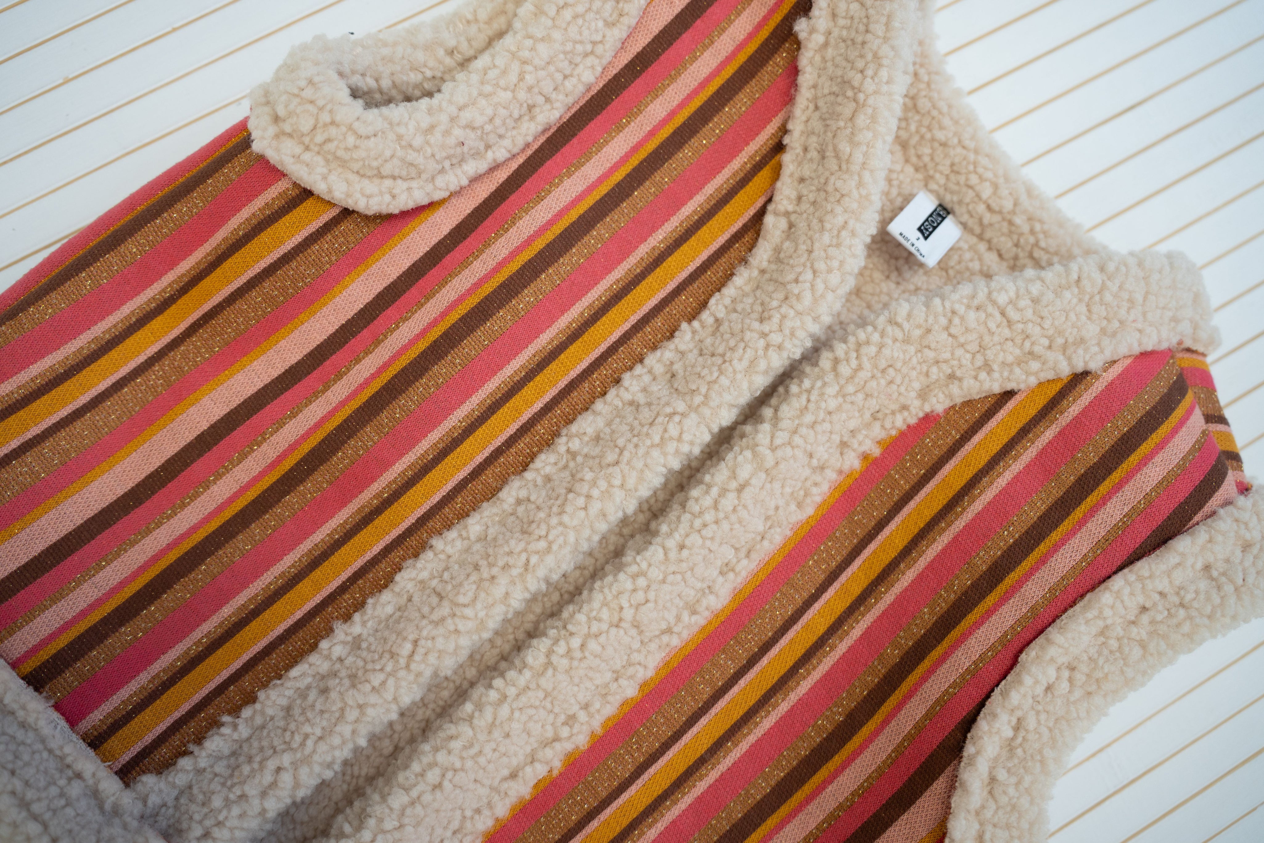 Niet te ontbreken de B.Nosy Gitte gilet. Het gilet heeft een zachte teddy binnenkant en een gestreepte patroon met diverse kleuren. In de stof is een lurex draad verwerkt wat een subtiel glitter effect geeft! Combineer dit gilet met de bloesjes en tops uit de collectie. Bijvoorbeeld met B.Nosy Tara top in de kleur grape wine!