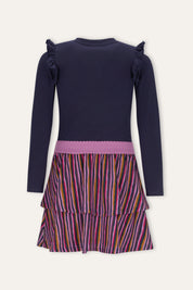 De B.Nosy Daphne jurk in blauw is perfect voor elke gelegenheid! Gemaakt van zacht katoen dat zorgt voor een fijn draagcomfort. Met schattige ruffles op de schouder en een vrolijk ontwerp, is deze jurk ideaal om te combineren met legging Lizzy. Laat je kleine meid stralen in deze prachtige jurk! Scan de QR-code om de reis van het kledingstuk te ontdekken!