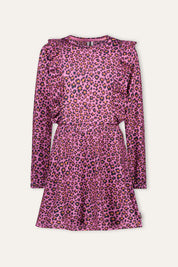 B.Nosy Dionne jurk in roze is perfect voor speelse meiden die stralen in comfort en stijl. Met schattige ruffles en subtiele pofmouwen is deze jurk een must-have. Combineer met de Maillot Mia voor een complete outfit. Scan de QR-code om de reis van het kledingstuk te ontdekken!