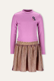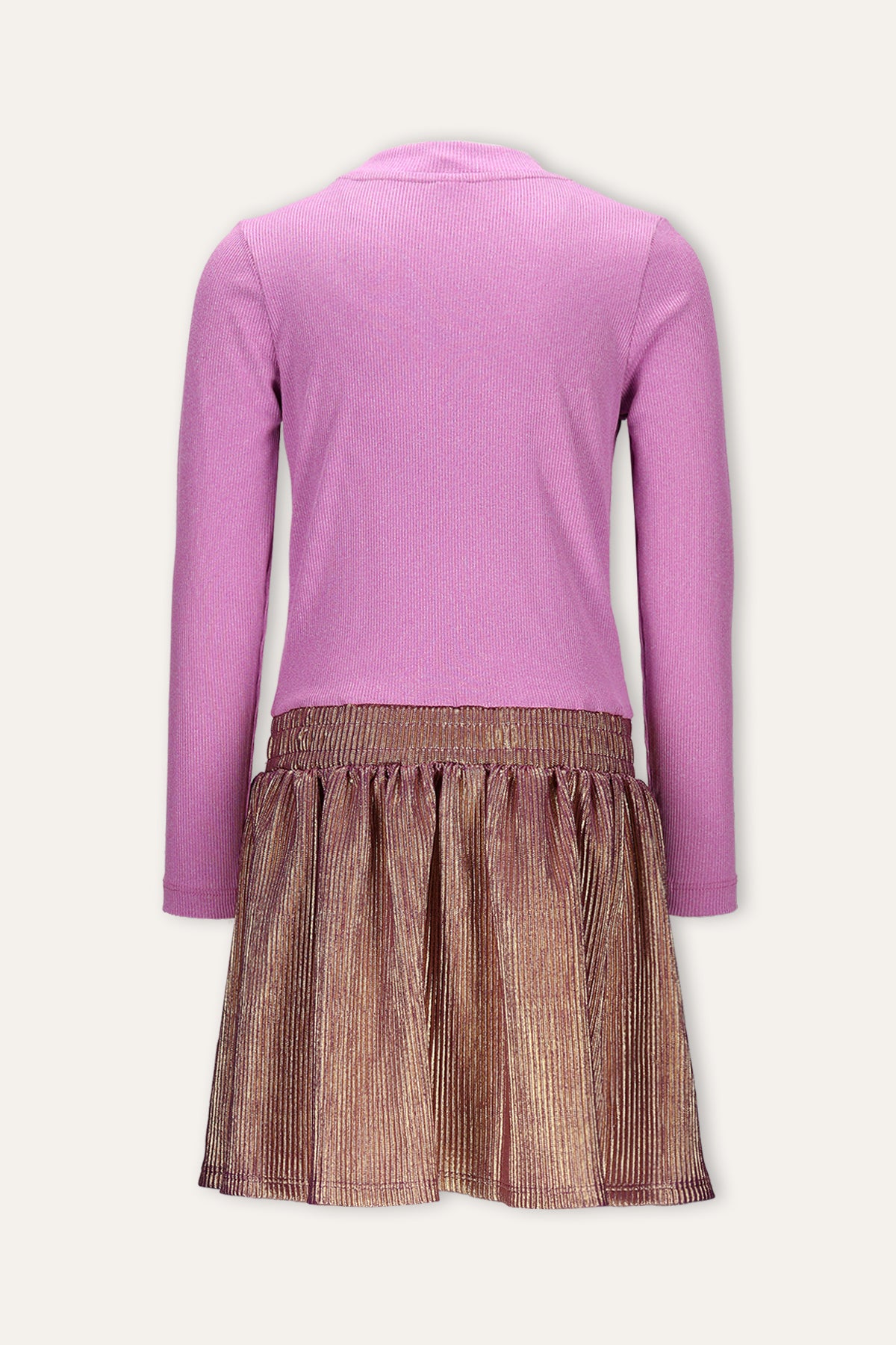 De B.Nosy Donia jurk is kleurrijk en ideaal voor kleine meiden! Gemaakt van gerecycled polyester biedt deze jurk een geweldig comfort en een speelse stijl. De plisse rok met paars-gouden effect geeft het geheel een extra glans. Perfect te combineren met maillot Mia voor een vrolijke outfit. Geschikt voor elke gelegenheid en leuk voor alle leeftijden. Scan de QR-code om de reis van het kledingstuk te ontdekken!