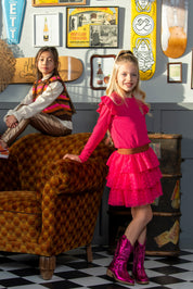 De B.Nosy Dora Jurk in roze is perfect voor jouw kleine meid! Gemaakt van comfortabel gerecycled polyester met elastaan, deze jurk heeft een speelse uitstraling door de mesh met flock stipjes. Combineer deze jurk met de Legging Lizzy voor een complete look die zowel leuk als stijlvol is. Ideaal voor elke gelegenheid, deze jurk laat jouw kind stralen! Scan de QR-code om de reis van het kledingstuk te ontdekken!