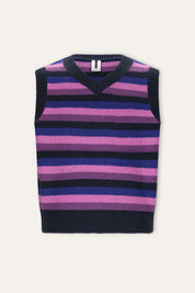 De Gladys Spencer van B.Nosy is een echte toevoeging aan jouw garderobe. De spencer is gemaakt van polyamide en heeft vrolijke paarse en blauwe strepen. Combineer met Top Tess voor een trendy outfit. De spencer biedt niet alleen comfort, maar helpt ook om een unieke look te creëren in elke gelegenheid. Scan de QR-code om de reis van het kledingstuk te ontdekken!