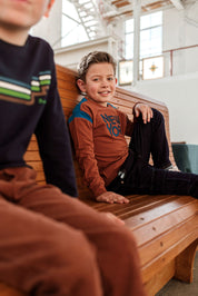 B.Nosy sweater Brent is een heerlijk warme trui met raglan mouw en leuke print. Door de speelse kleurwisseling op de mouw is de trui toch net wat anders dan anders! Combineer met een leuke denim, of met onze jog pants Bruce voor een comfy outfit.