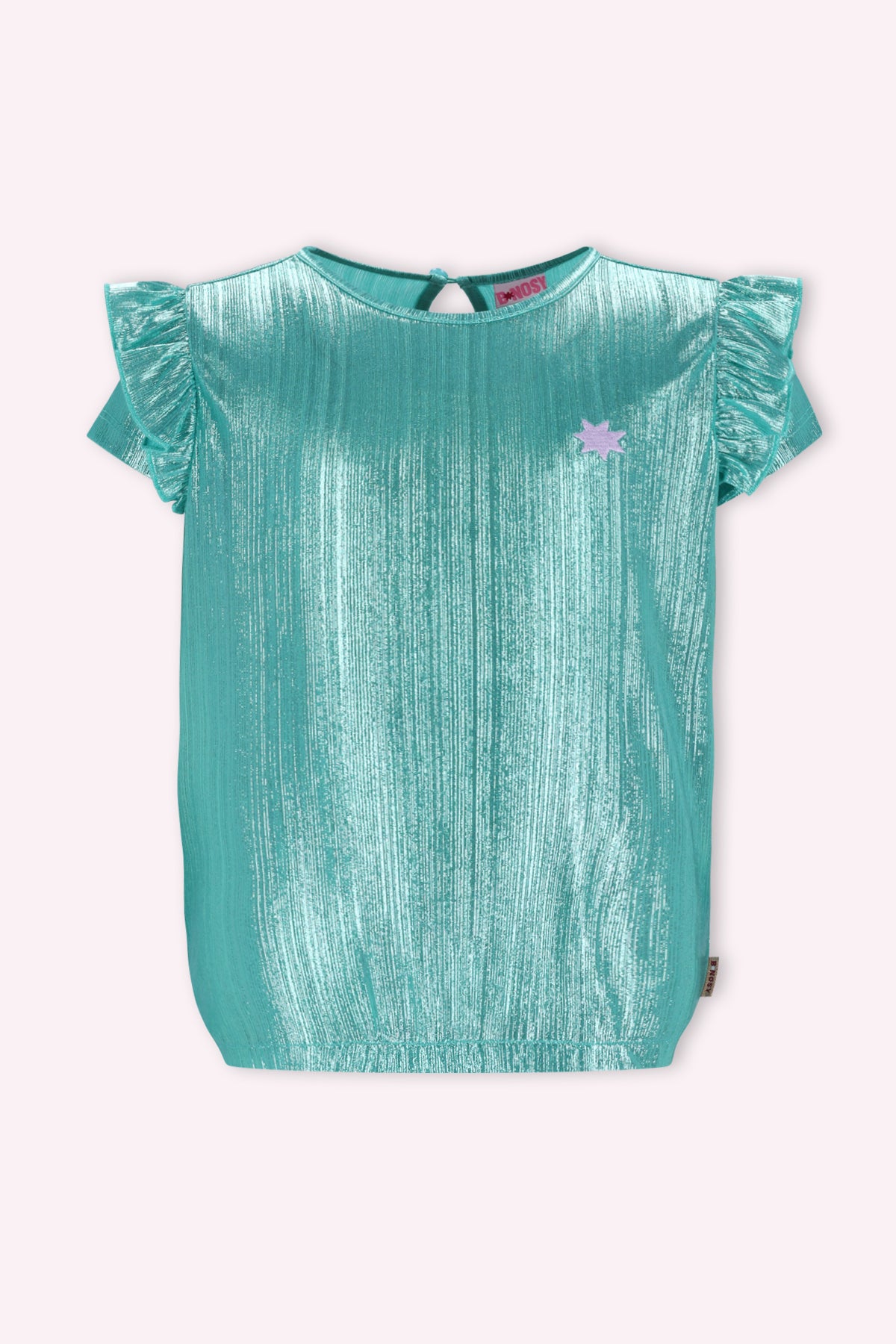 Dit toffe B.Nosy topje is een must-have voor elke meid die van kleur houdt! Met de metallic plissé stof en de speelse roezel langs de mouw, straalt dit item helemaal. Het subtiele borduurtje op de borst maakt de look compleet. Combineer het met broek Patricia voor een onweerstaanbare outfit. Dit fashionable item is perfect om mee te mixen en matchen!• Trendy metallic plissé stof, een echte eyecatcher.
