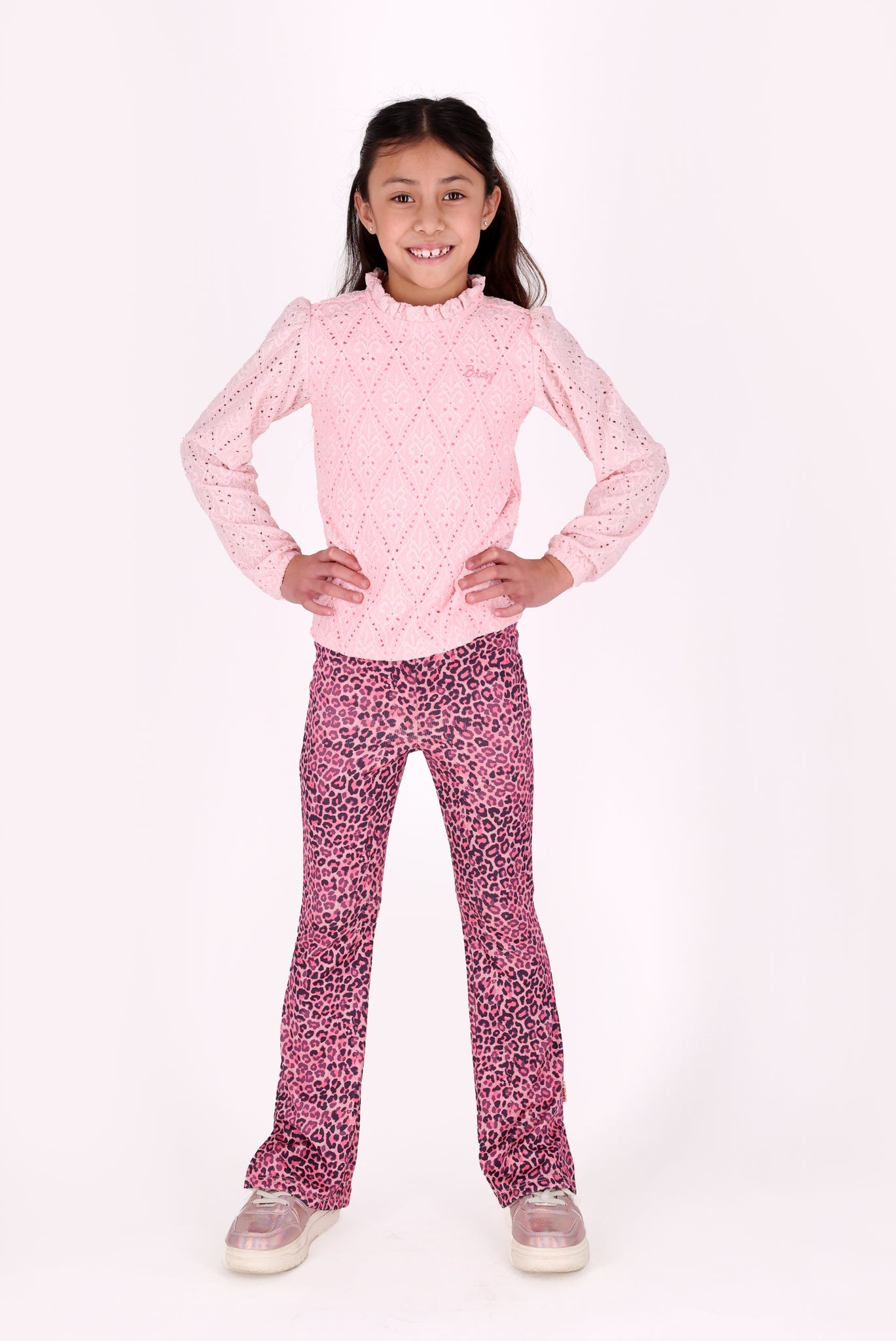Een toffe outfit maak je compleet met deze flared broek van B.Nosy! De roze luipaardprint is een echte blikvanger. Gemaakt van een zachte stof, is deze broek super comfortabel om de hele dag te dragen en te stralen. Perfect om te mixen en matchen met andere items uit de collectie voor een fashionable look.
