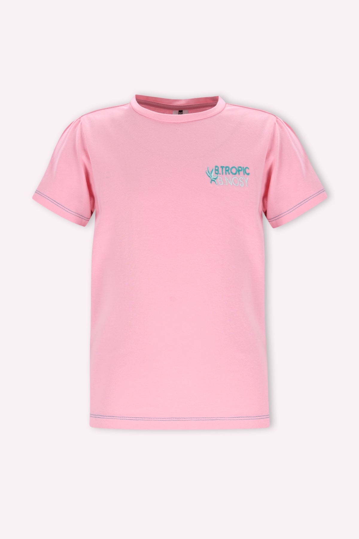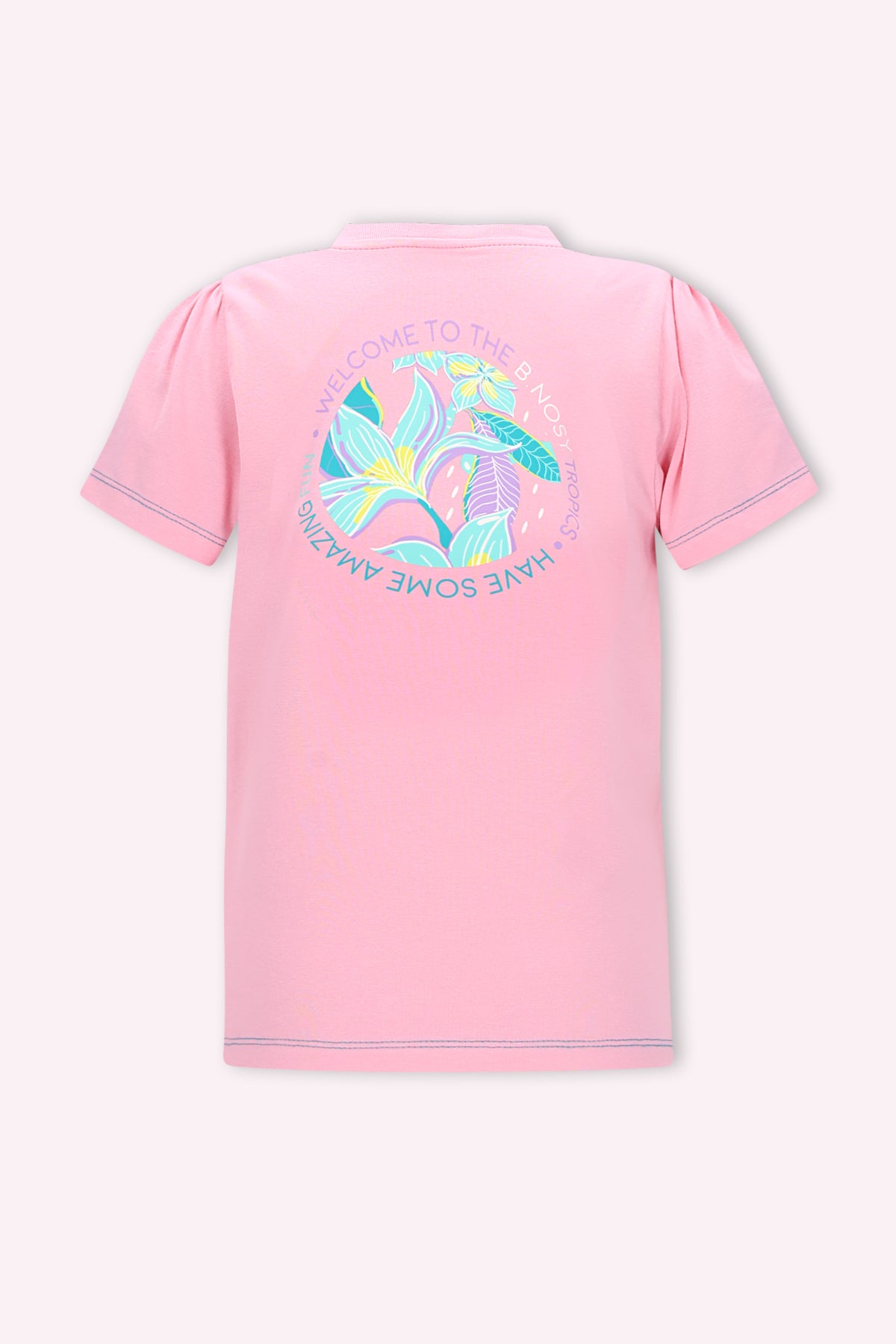 Dit vrolijke roze T-shirt van B.Nosy is een echte must-have voor je meid! Het shirt heeft een toffe artwork op de borst en leuke contrast stiksels, wat het helemaal afmaakt. Het is een fashionable item dat perfect te combineren is met de rok River voor een complete, speelse outfit.