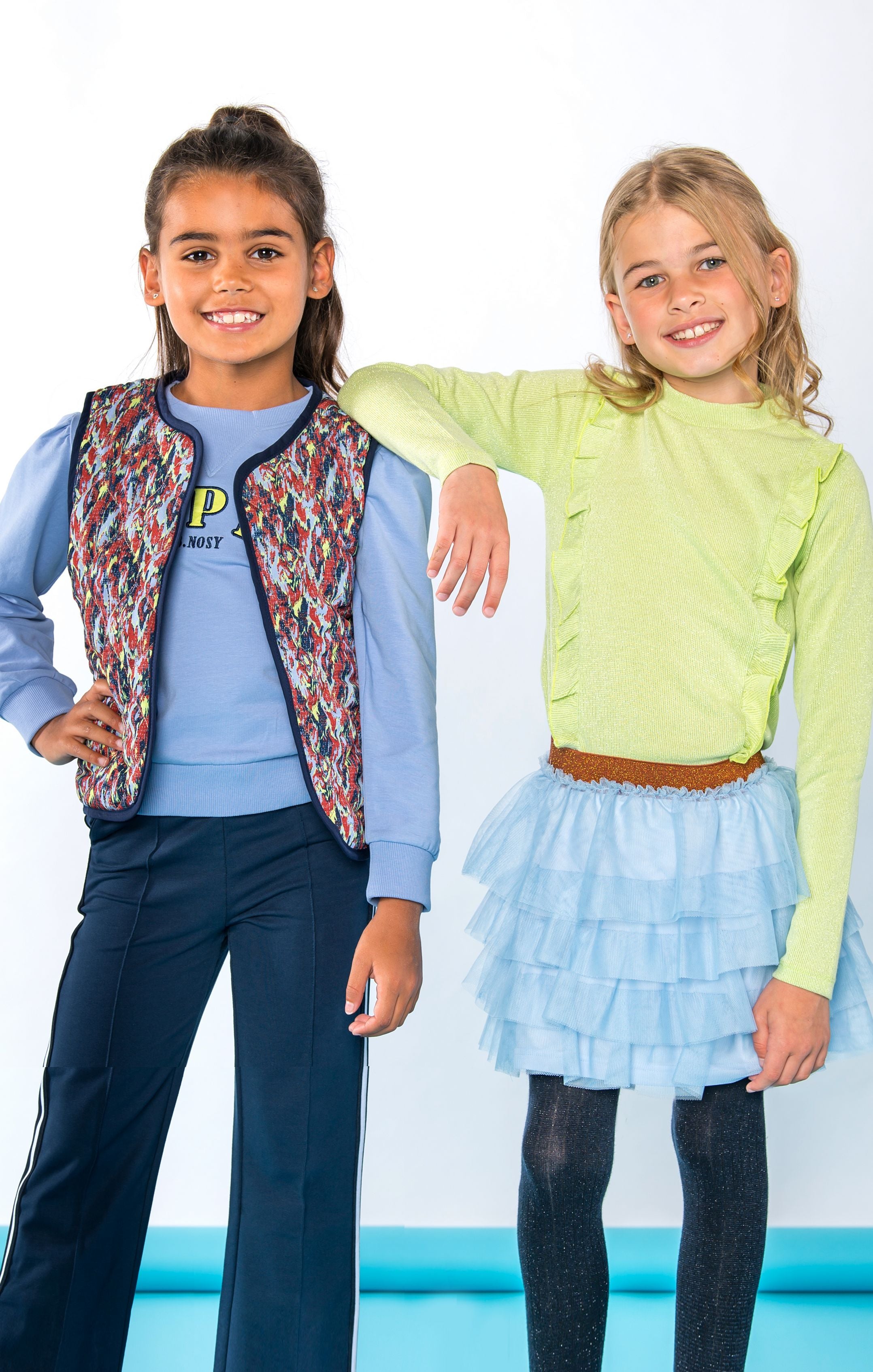 Sweater Sophie in zijn licht blauwe kleur heeft een fancy lime groen artwork. B.Nosy sweater Sophie is niet alleen leuk, maar ook super comfy! De sweater is gemaakt van biologisch katoen en heeft een zachte gebrushede binnenkant, heerlijk. Cobineer met B.Nosy rokje Rae voor een toffe look!