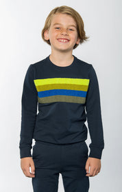 Deze leuke B.Nosy sweater Sven heeft een tof gestreept frotté artwork in verschillende kleuren. De sweater is gemaakt van een zachte sweatstof van biologisch katoen en heeft een brushed binnenkant waardoor hij super zacht is! Verkrijgbaar in twee kleuren.