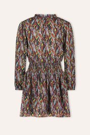 Das Kleid B.Nosy Dee ist die perfekte Wahl. Das Kleid hat einen abstrakten Druck mit einer Mischung aus wunderschönen Farben. Dress Dee besteht aus einem gewebten Stoff mit dezenter Struktur, der teilweise auch aus recyceltem Polyester besteht. Sie können das Kleid mit der Wendeweste Ginny kombinieren.