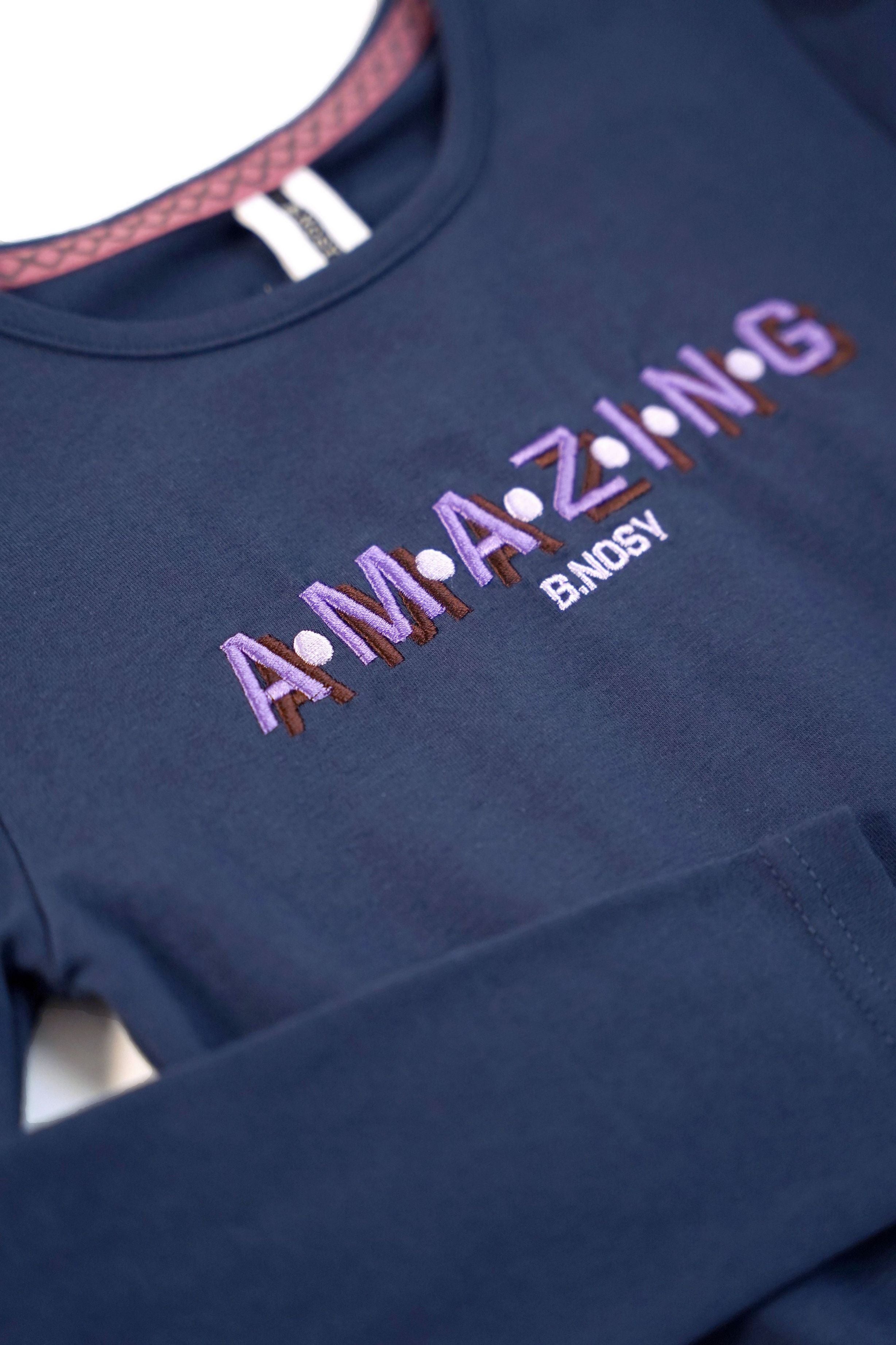 Dieses Kleid ist speziell für Mädchen, die gerne auffallen! Der Rock hat ein schlichtes dunkelblaues T-Shirt als Oberteil und einen supercoolen Tüllrock als Unterteil. Wir finden die Farbkombination aus Dunkelblau und Lila richtig cool! Der lila Aufdruck rundet dieses Kleid ab!