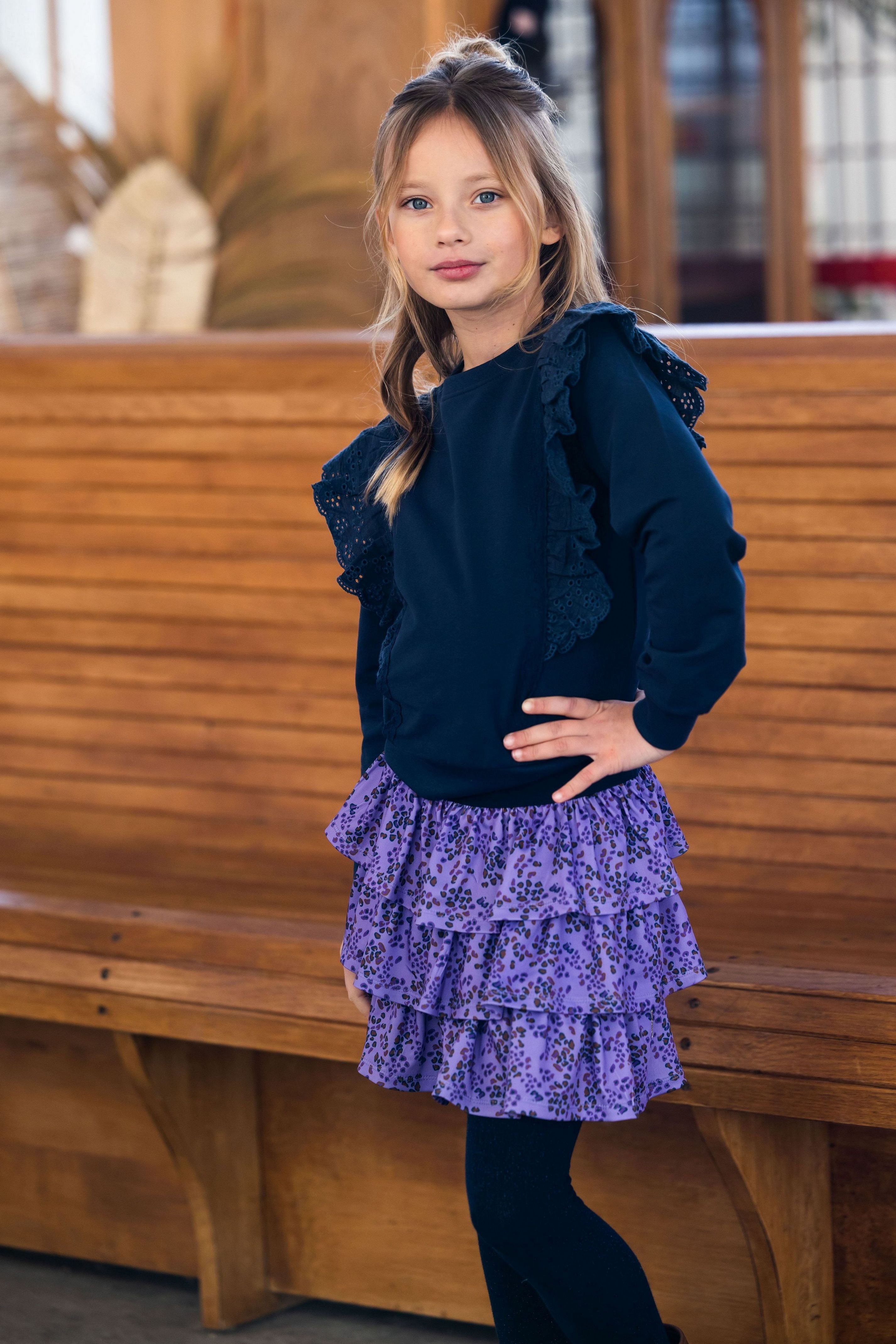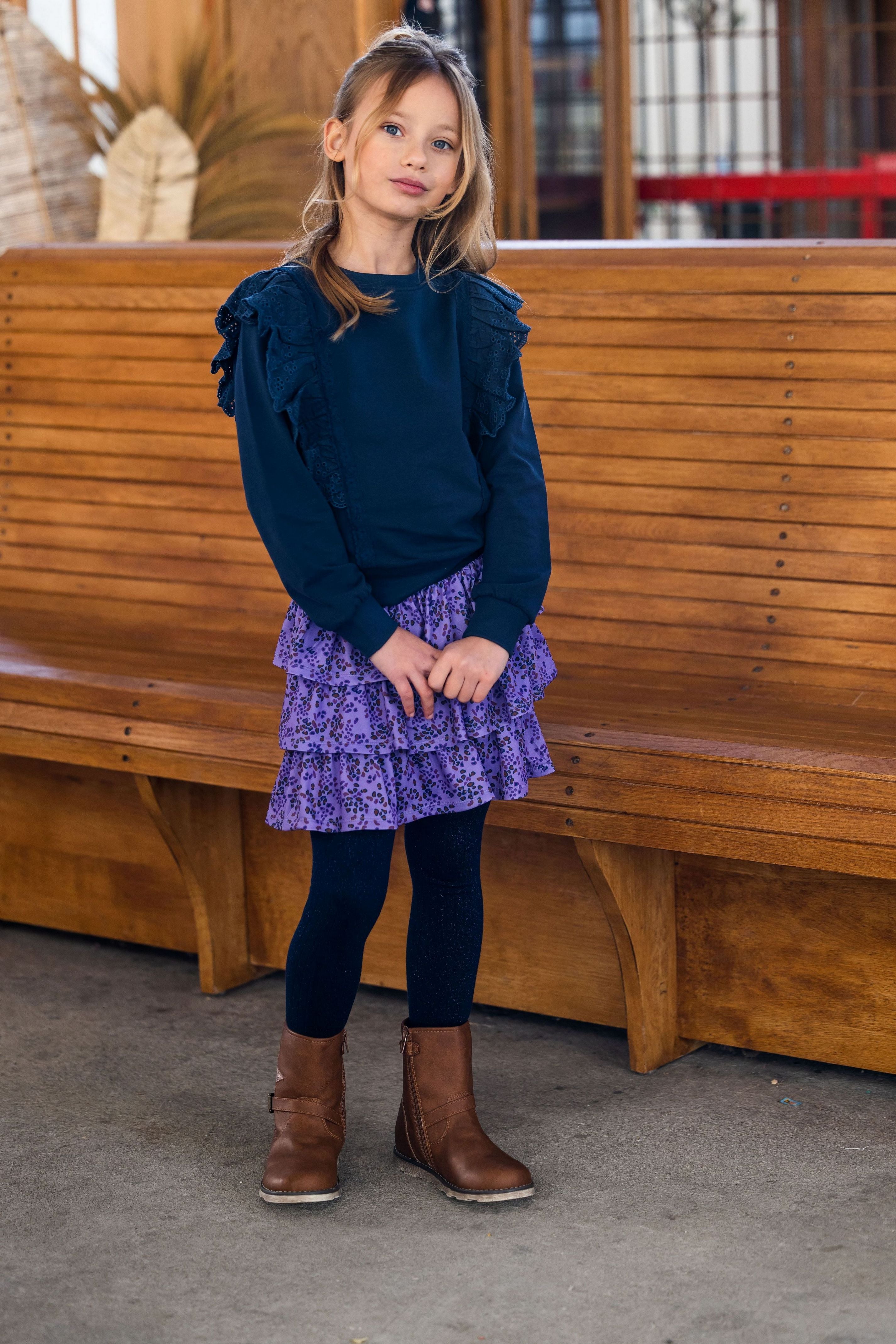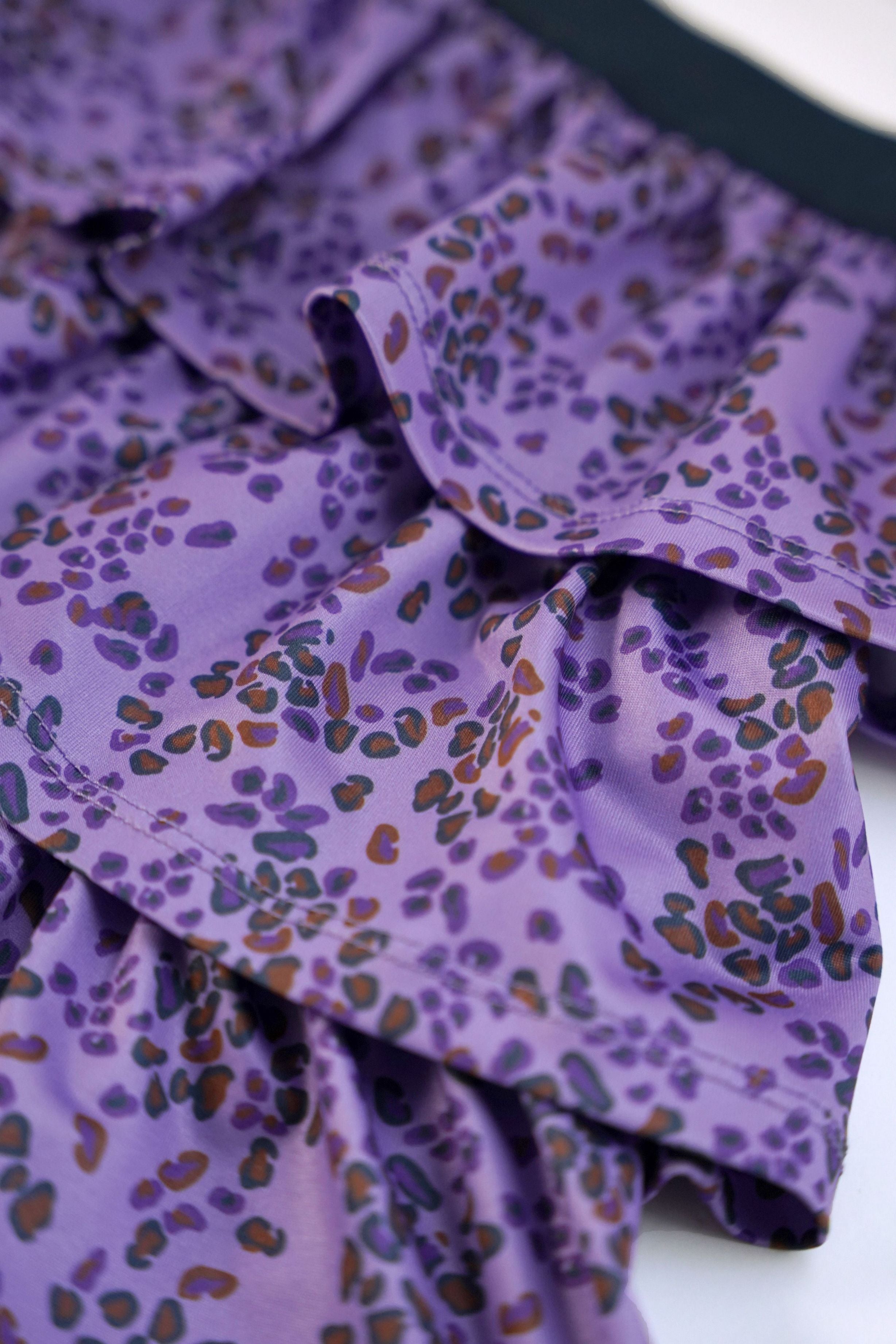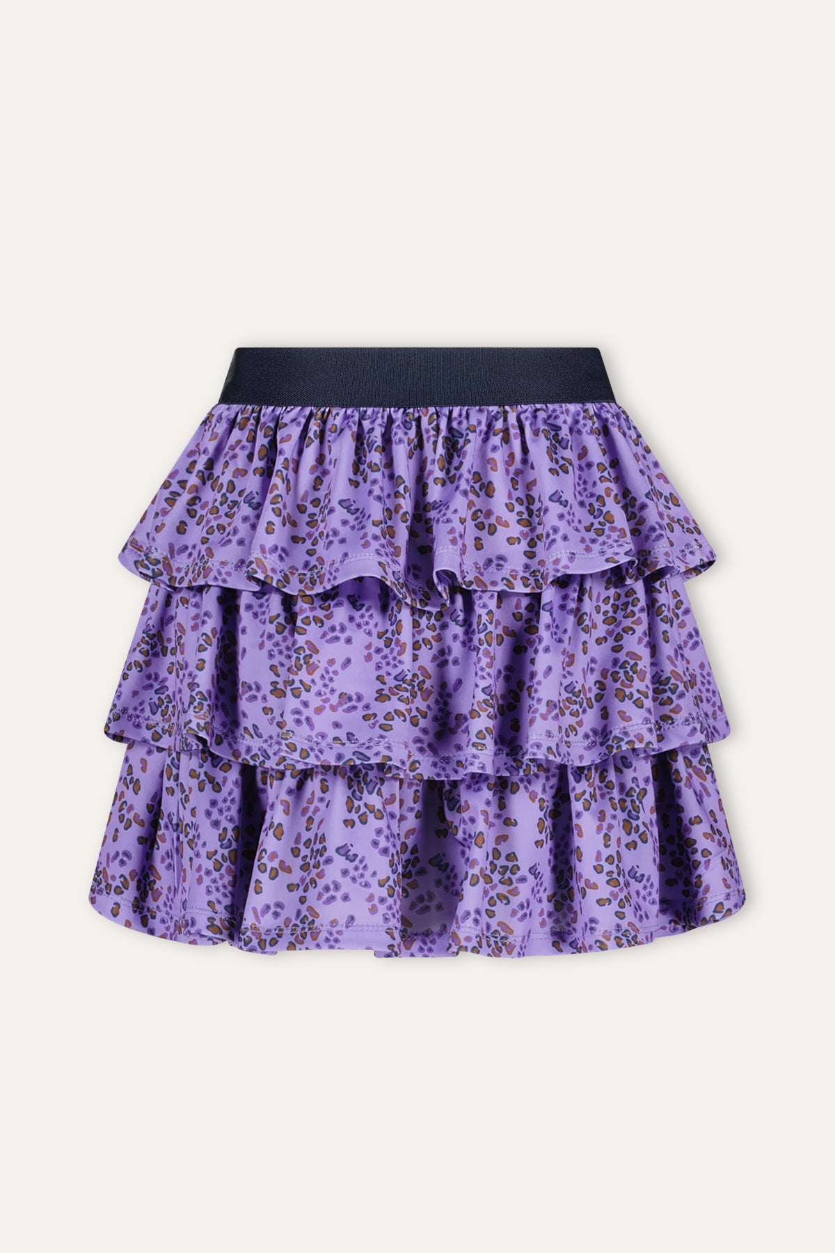 Mit dem Dirkje-Rock fallen Sie sofort auf. Dieser fließende Rock hat ein cooles lilafarbenes kleines Leopardenmuster. Das Gummiband hat eine dunkelblaue Marinefarbe. Der Rock besteht aus 3 Lagen, was ihm einen schönen fließenden Effekt verleiht. Tragen Sie diesen Rock mit dem Dila-Oberteil im gleichen Aufdruck für einen komplett passenden Look!
