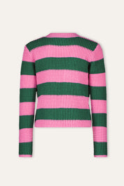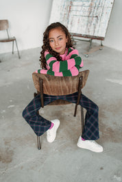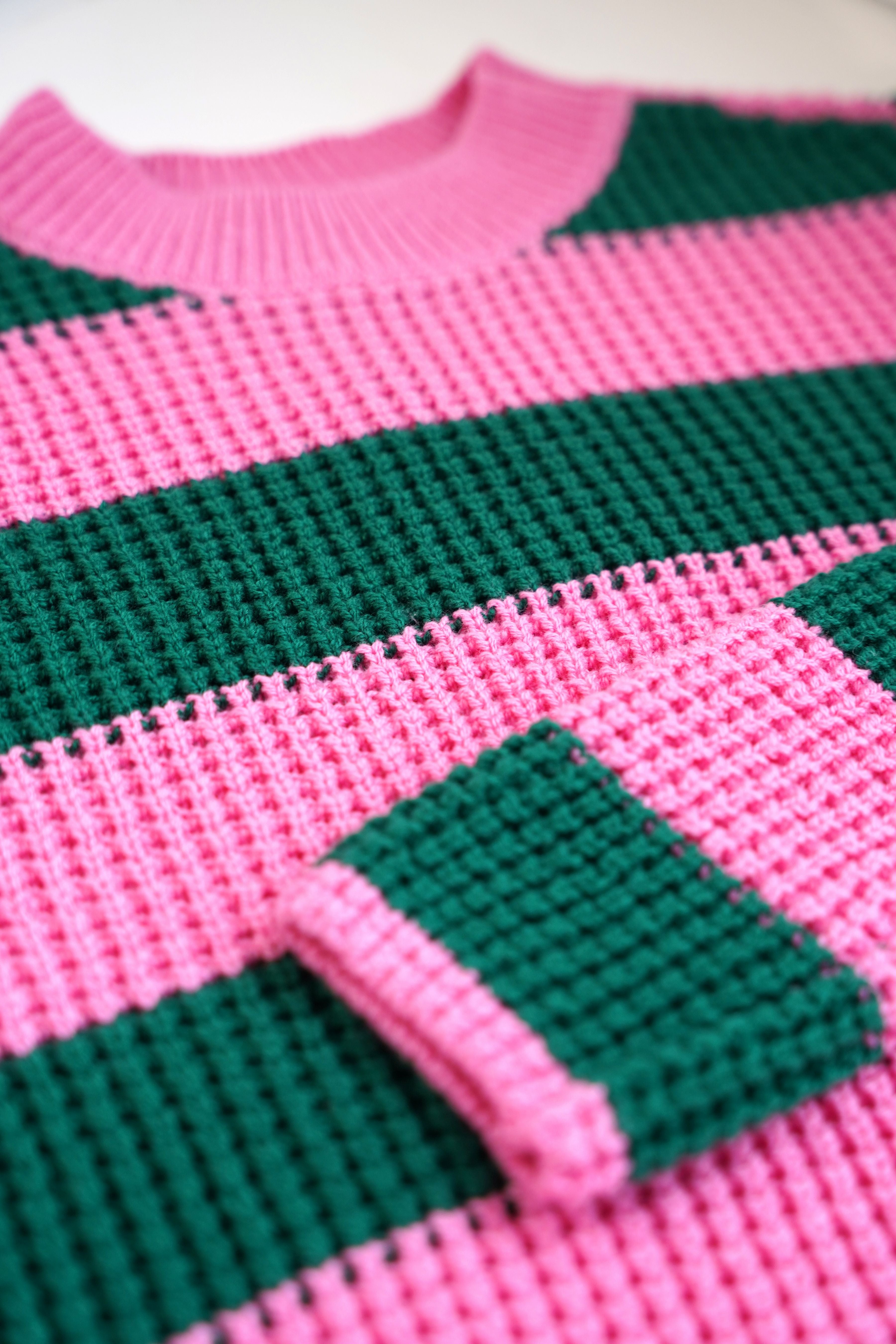 Pullover Eline ist ein echter Favorit! Dies ist ein schöner Strickpullover mit langen Ärmeln und eine echte Ergänzung für Ihre Garderobe! Wir lieben die Farbkombination aus leuchtendem Rosa und leuchtendem Grün! Dieser Pullover lässt sich hervorragend mit unseren anderen Artikeln aus diesem Thema kombinieren.
