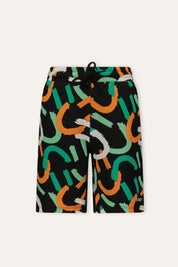 FAVO ALERT! De zwarte korte short met een all-over print in de kleuren mintgroen, oranje en wit tovert zomaar een glimlach op je gezicht. Het B-nosy borduur onderaan de broekspijp maakt het helemaal af. De broek is gemaakt van een zacht materiaal dus extra comfortabel. gemaakt van biologisch katoen en in meerdere opties verkrijgbaar.
