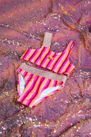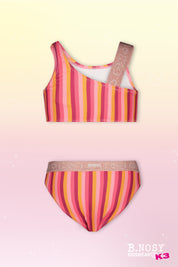 De B.Nosy x K3 Bikini Wixie Streep in roze is perfect voor de jonge waterrat. Deze speelse bikini biedt comfort én stijl en is gemaakt van gerecycled polyester. Perfect voor een dagje strand of zwembad, combineer met leuke accessoires voor een volledige look. De bikini heeft een UV-laag voor extra bescherming.