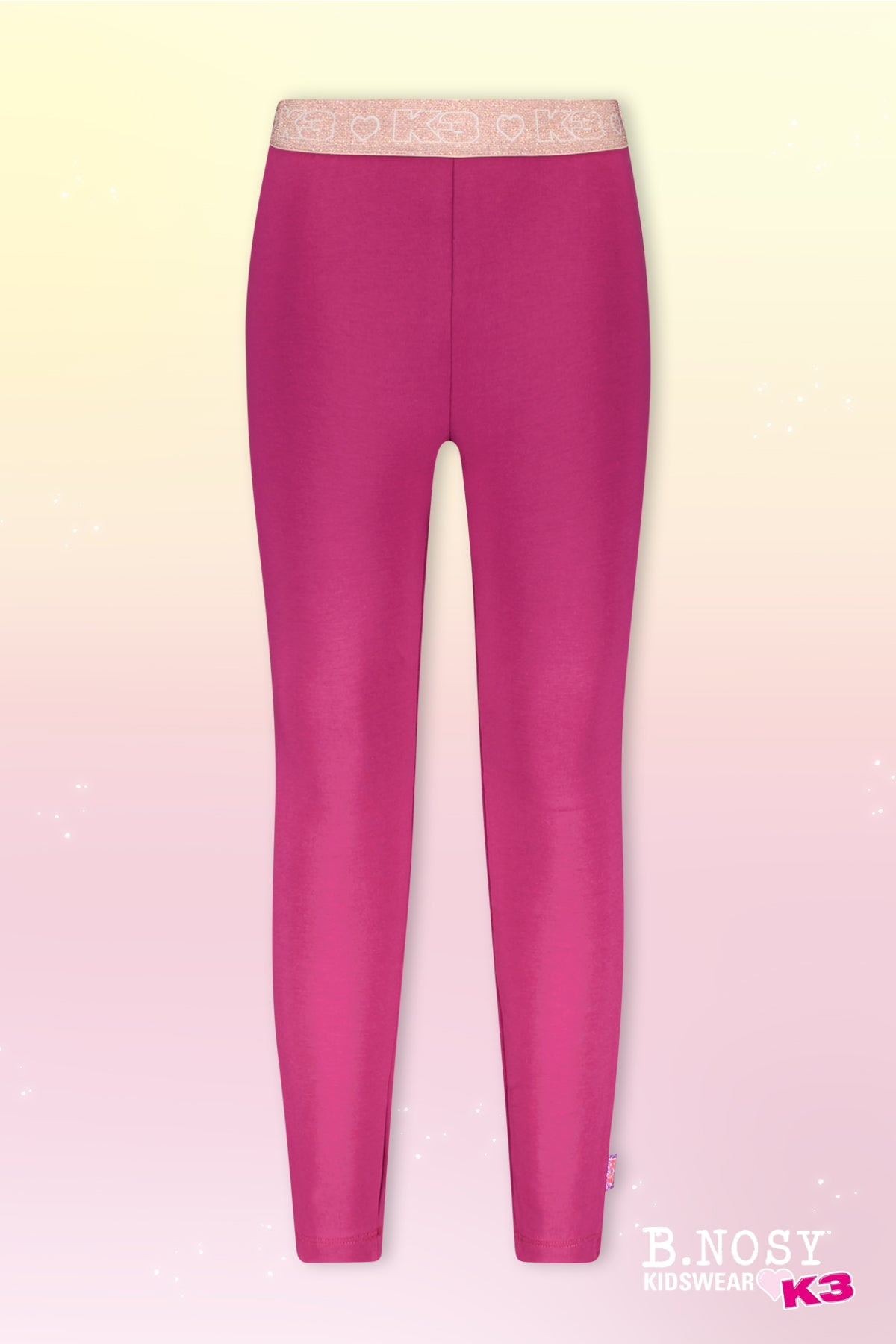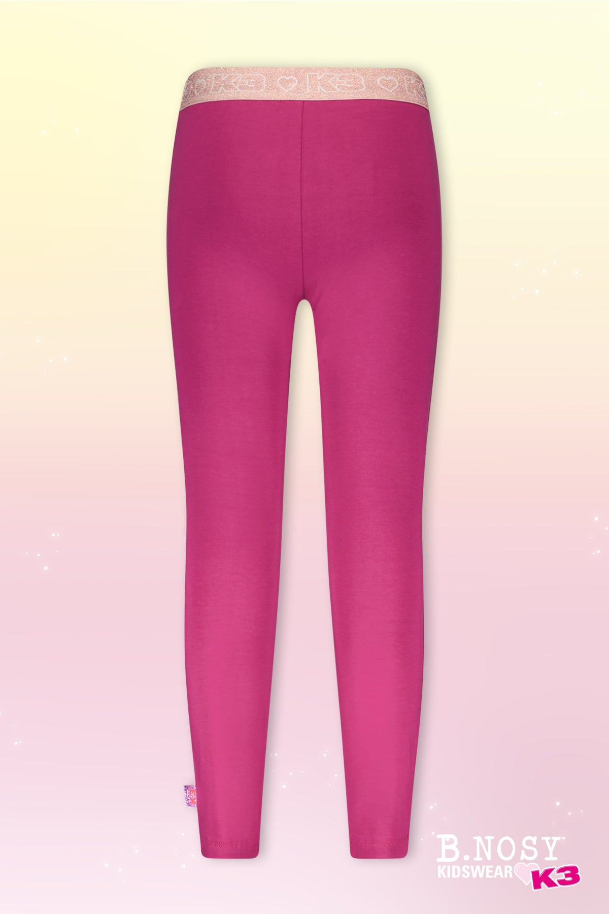 De B.Nosy x K3 legging Lizzy is een speelse en comfortabele legging verkrijgbaar in roze en paars. Perfect voor elke outfit en ideaal te combineren met een rokje of jurkje. Deze must-have biedt je kind bewegingsvrijheid en een vrolijke stijl. Laat je kleintje stralen in deze stijlvolle legging!