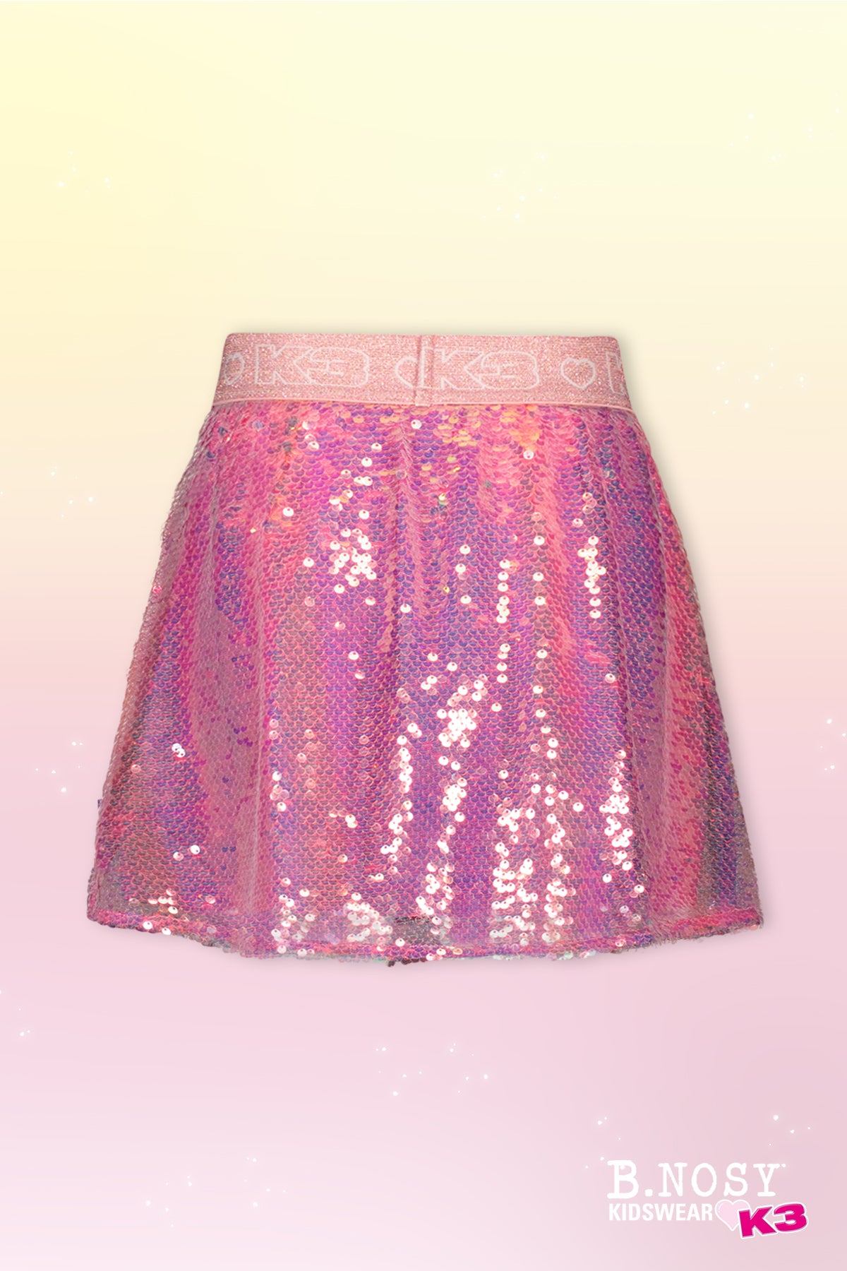 Deze B.Nosy x K3 rok Rhodee wil je hebben! De rok met roze gouden pailetten maakt elke outfit helemaal af en laat je stralen. Combineer met T-shirt Tammy of Tora en onze té leuke K3 sokken voor een complete look. Ideaal voor elke gelegenheid, laat jouw kleine meid shinen in dit trendy rokje!