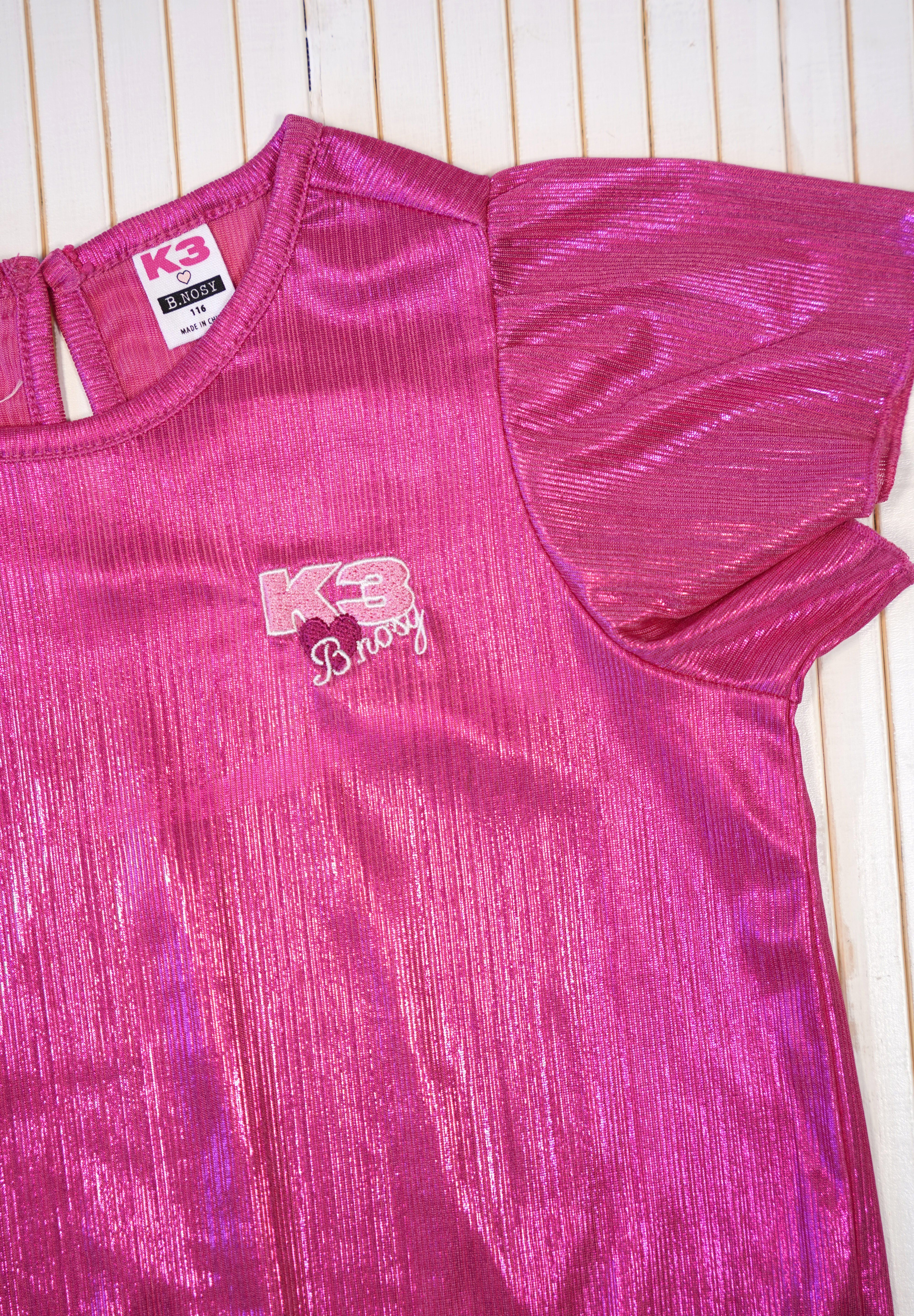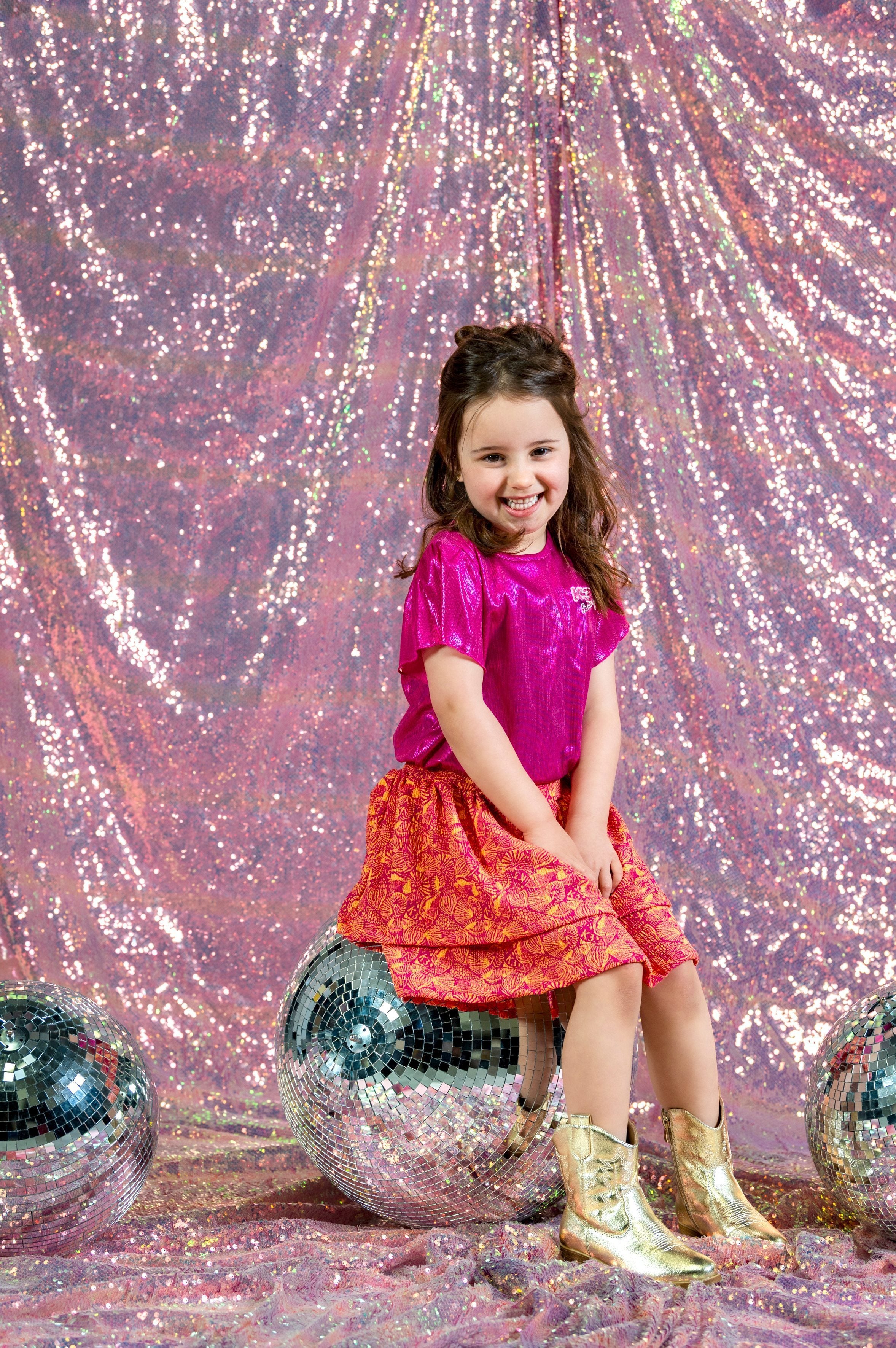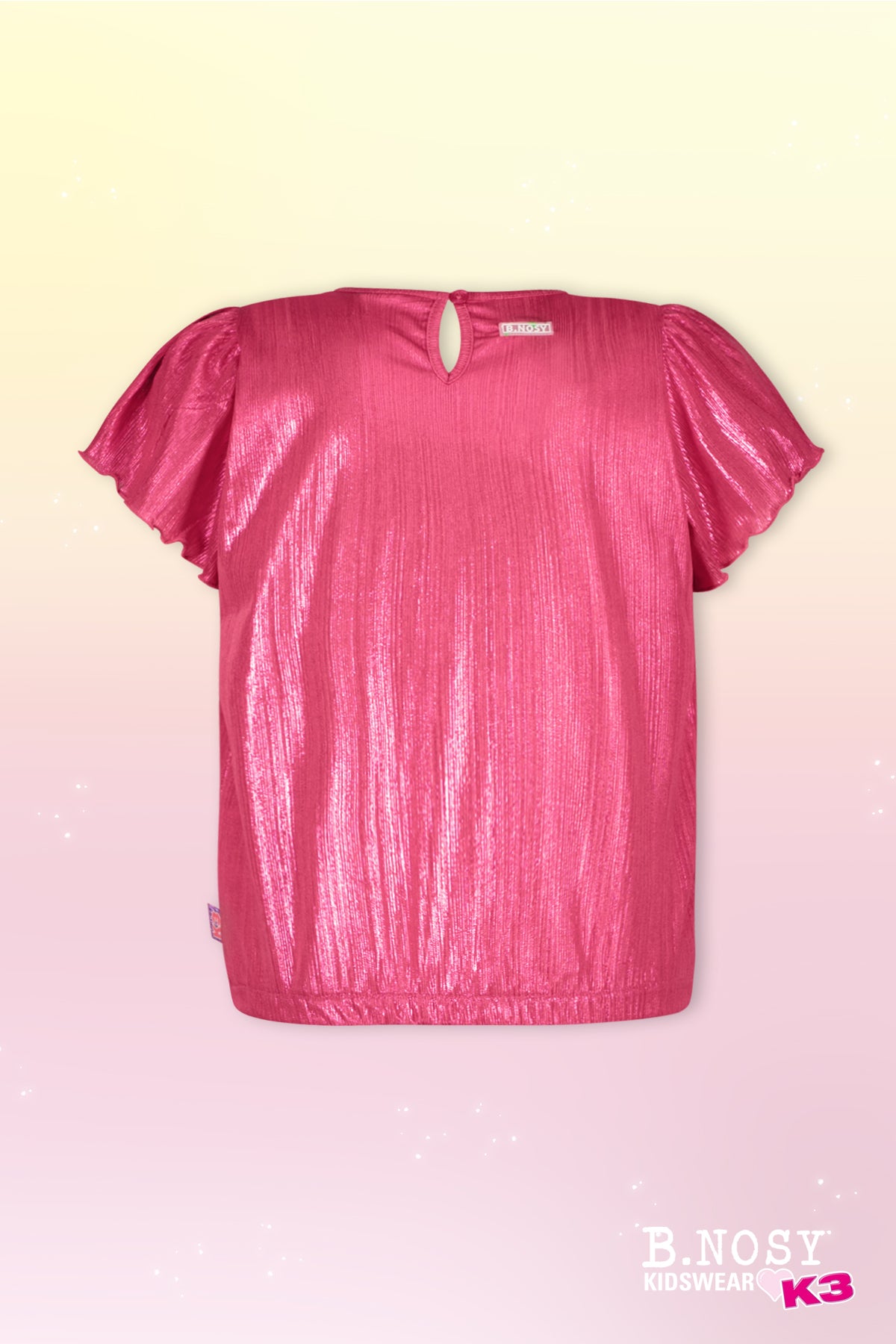 De B.Nosy x K3 T-shirt Bobbi in oranje is perfect voor elke gelegenheid. Dit trendy shirt met pofmouwen en een schattige strik is gemaakt van gerecycled polyester, zit heerlijk en geeft een vrolijke uitstraling. Combineer het met de broek Palomi of het rokje Ruth voor een complete look. Dit shirt is een kleurrijke toevoeging aan de garderobe van elke jonge fashionista en perfect voor avonturen en feestjes.