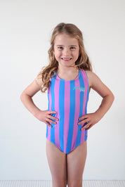 Het B.Nosy badpak Wila geeft je een vrolijk en zomers gevoel dankzij de gestreepte print in toffe kleuren. Badpak Wila heeft gekruiste bandjes op de rug en een subiel printje op de borst. Het badpak is gemaakt van gerecycled poyester en is voorzien van speciale UV-bescherming, dus extra veilig voor zonnige dagen!