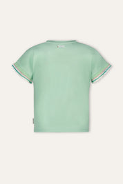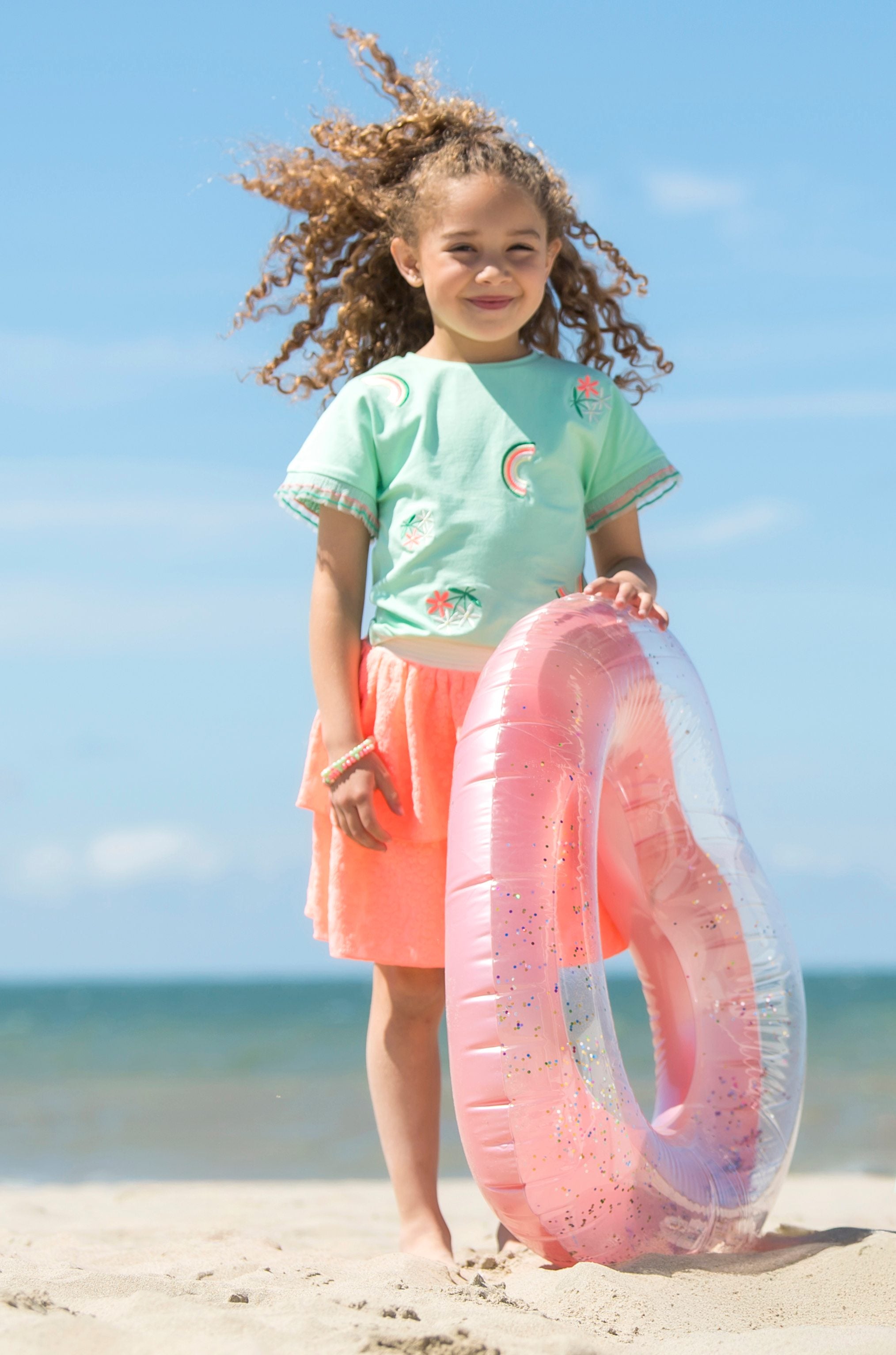 De Tanja top is een echte eyecatcher! Het zit hem in de unieke details, want hoe cute zijn de mouwen met schattige ruffle? De top heeft een vrolijk artwork over de gehele voorkant, hoe gaaf? Perfect te dragen in de zomer!