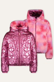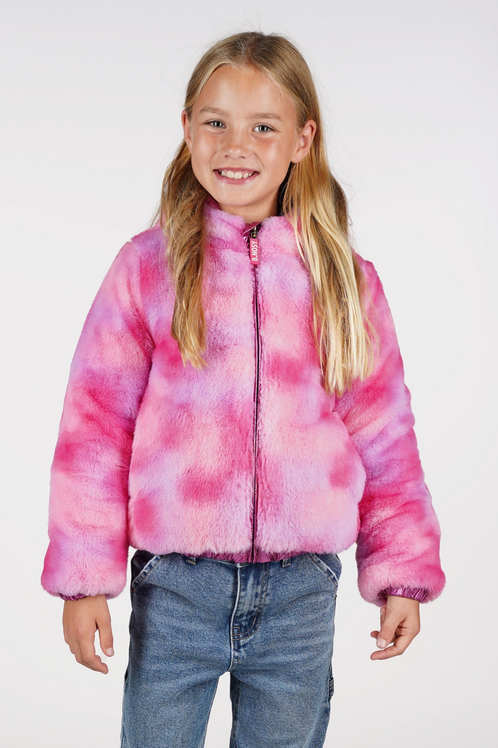 B.Nosy Jessie Jas is de perfecte winterjas voor kinderen in een opvallende roze kleur. Gemaakt van gerecycled polyester, biedt deze jas zowel stijl als comfort. Met een omkeerbare functie, kan je kiezen tussen een speels sterrenpatroon of een zachte fake fur uitstraling. Deze jas is ideaal voor het combineren met andere B.Nosy outfits, en maakt elke outfit speciaal. Scan de QR-code om de reis van het kledingstuk te ontdekken!