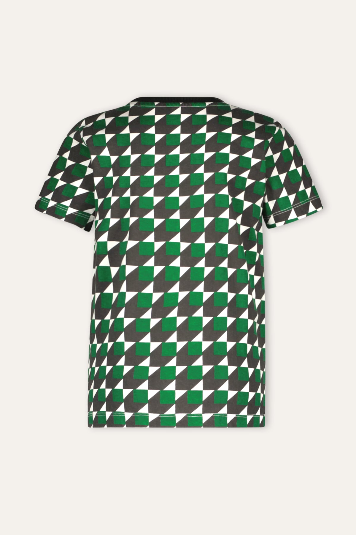 Dit T-shirt van B.Nosy is een echte eyecatcher! De coole grafische ruiten zorgen voor een stoere look. Daarnaast zit er een oranje borduursel van een helm op de linkerborst, wat het shirt een stoere uitstraling geeft. Gemaakt van biologisch katoen.