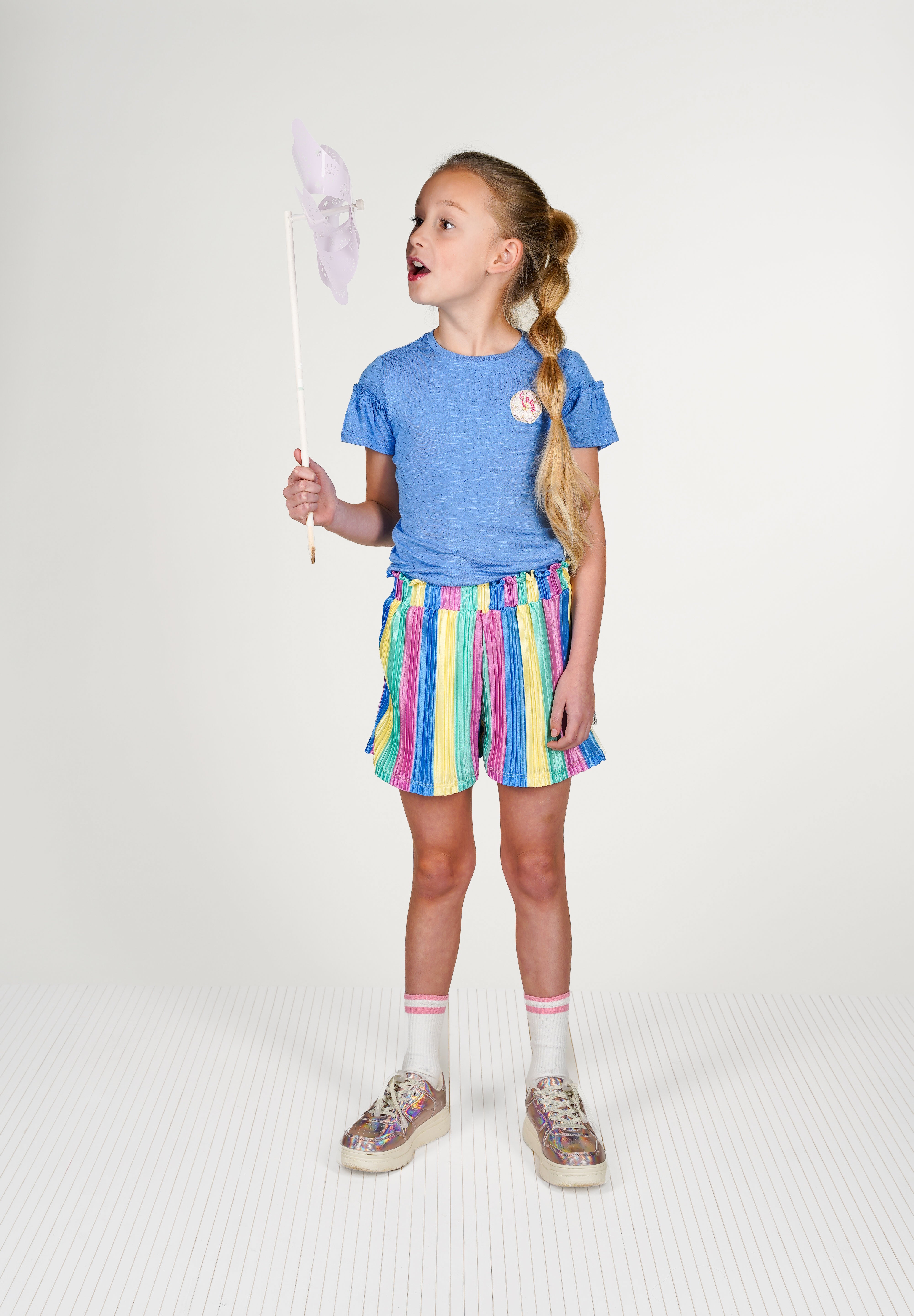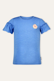 Tika top is gemaakt van een zachte slubstof met subtiele glitter. De ruffles bij de mouwen maken hem net wat specialer. De top is afgemaakt met een tof borduur op de linkerborst. Perfect voor de zomerdagen!