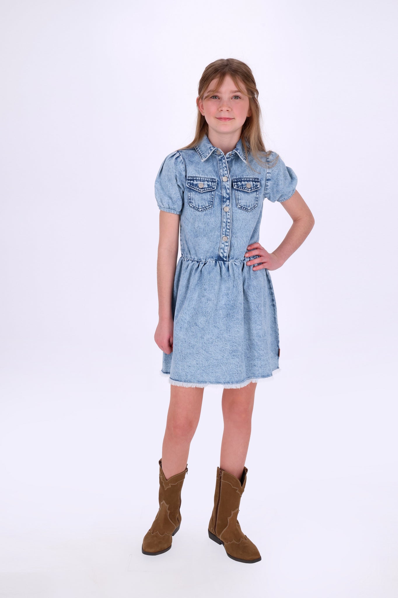 B.Nosy spijkerjurk met pofmouwen – Denim blauw