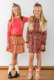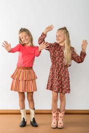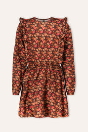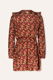 Dit is jurk, Dionne. De stof is super zacht met veel rek en dus super comfortabel. Daarnaast heeft de stof een prachtige print met een mix van diverse kleuren. Het jurkje heeft een toffe afwerking met ruffels en elastische cuffs. Met dit jurkje zit je altijd goed. Combineer hem samen met B.Nosy Gaby gilet in de kleur grape wine! Gemaakt van gerecycled polyester.