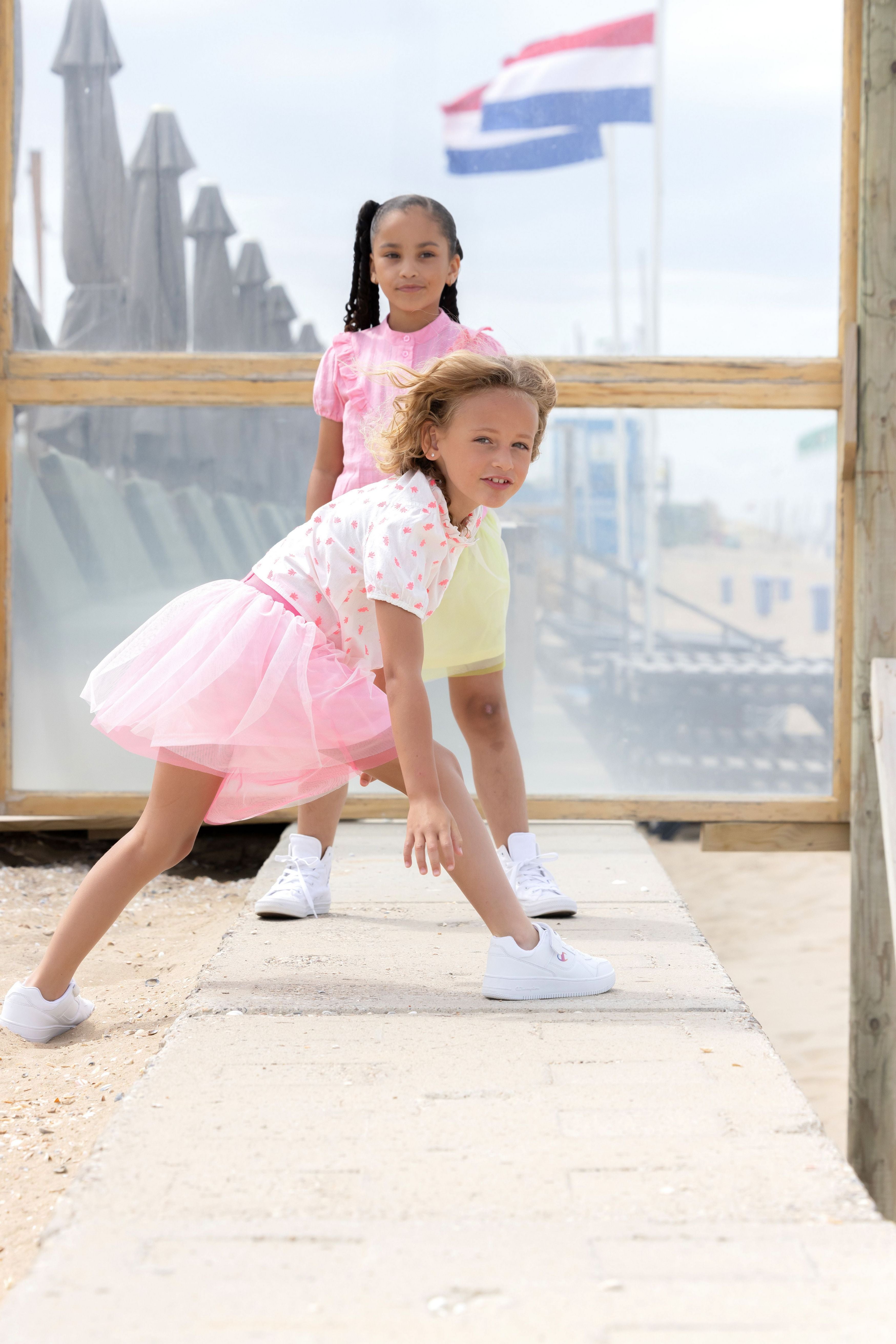Wauw! In deze vrolijke rok kun je eindeloos rondjes blijven draaien! Emmy is een mooie tule rok, maar niet zomaar eentje. Over de fel roze laag hebben we nog een extra witte laag tulle toegevoegd wat zorgt voor een fris Γ©n uniek effect! De fel roze tailleband maakt het girly geheel helemaal af.