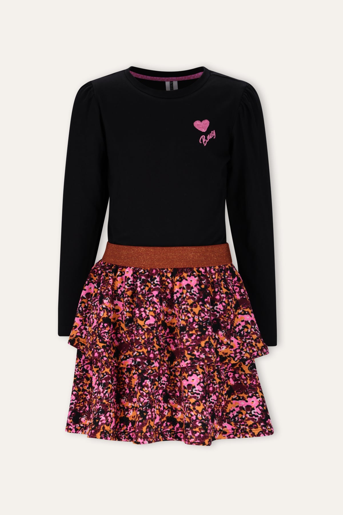 B.Nosy Daphne jurk in zwart is perfect voor jouw kleine fashionista! Gemaakt van biologisch katoen en elastaan, biedt deze vrolijke jurk comfort en stijl. Het schattige hartjes borduur maakt de jurk helemaal af. Combineer deze jurk moeiteloos met de Maillot Marley voor een complete look.