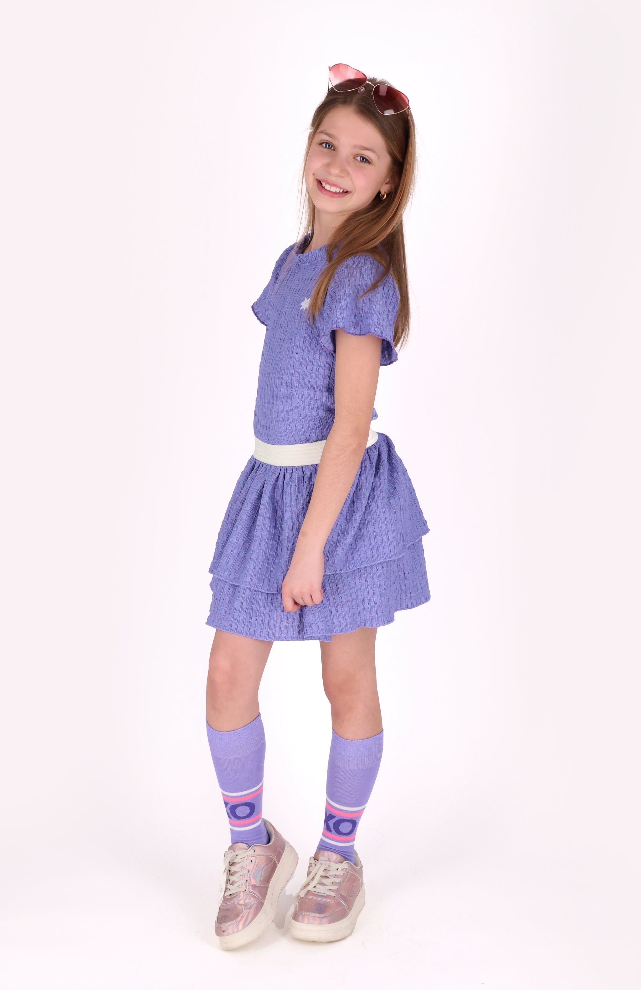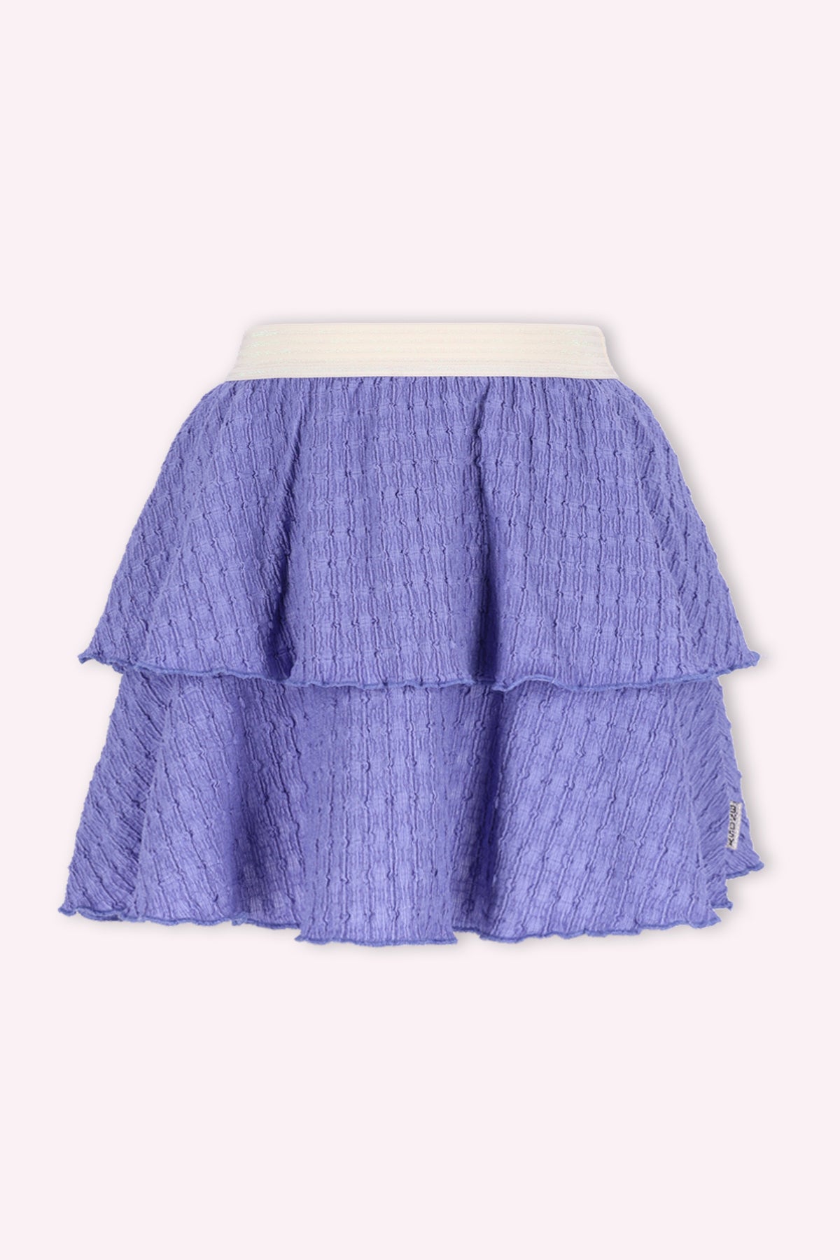 Dit leuke rokje van B.Nosy is een echte must-have voor deze zomer. Met een speelse overlappende ruffel en een glitter waistband, straalt dit rokje helemaal. De lichtblauwe kleur maakt het een trendy item dat je makkelijk kunt mixen en matchen met andere B.Nosy items voor een toffe outfit.