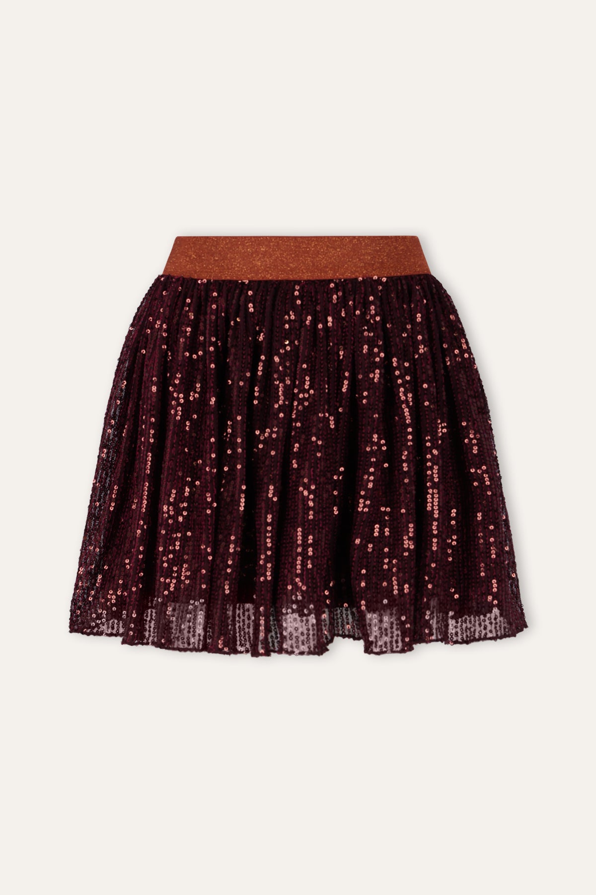 Voeg wat flair toe aan de garderobe met de B.Nosy River rok! Deze prachtige donker rode rok is gemaakt van gerecycled polyester en heeft schitterende pailletten. Perfect voor een feestelijke outfit of een casual look, deze rok kan gemakkelijk gecombineerd worden met tops als Tess of Tara. Geef de outfit van jouw kleine meid de sparkle die het verdient en laat haar stralen.