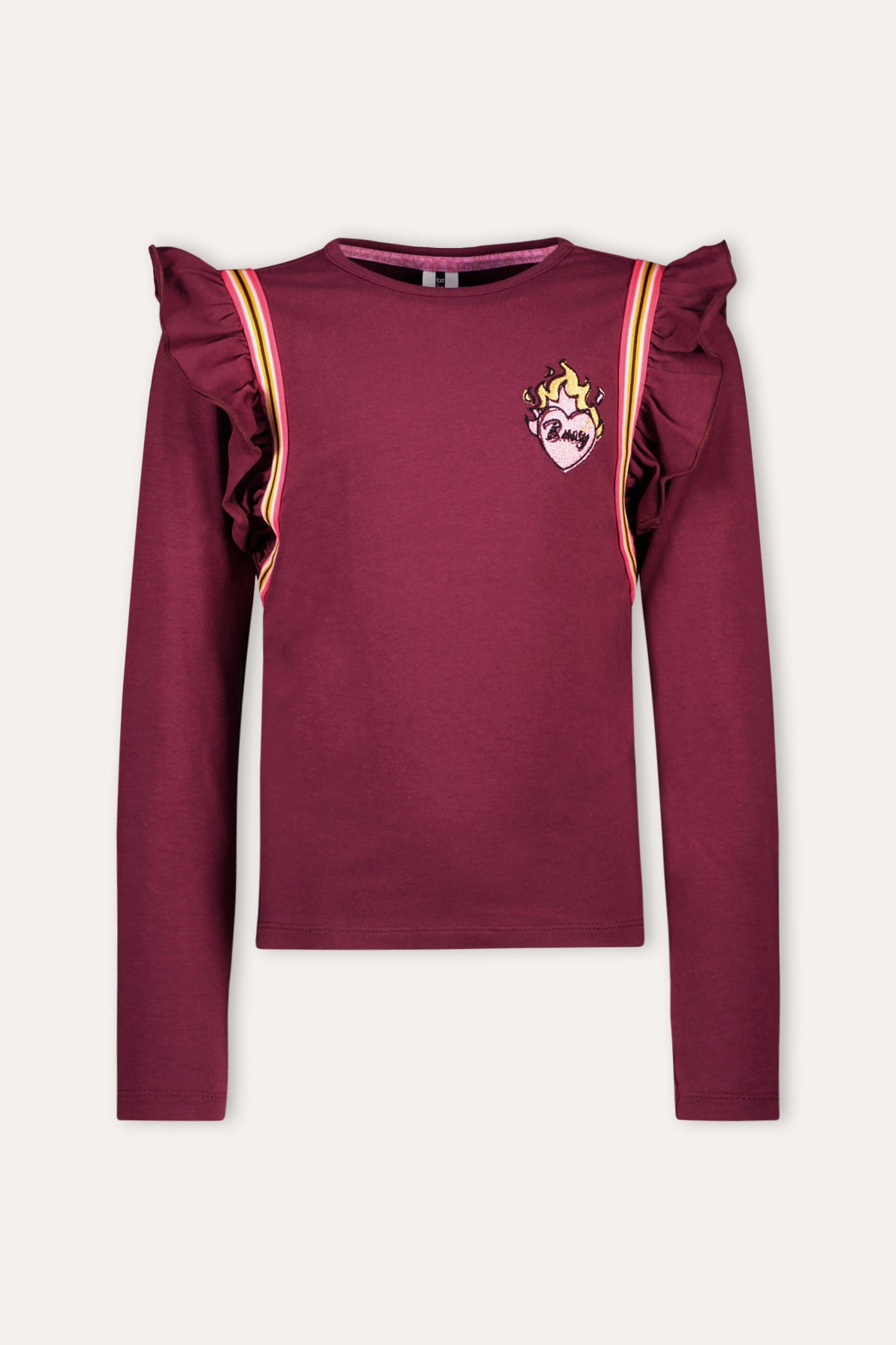 Het B.Nosy Tess T-shirt in rood is een trendy en comfortabel shirt dat jouw kleine meid doet stralen. Met schattige ruffles en kleurrijke tape langs de schouders is dit shirt een echte blikvanger. Gemaakt van biologisch katoen en perfect te combineren met een rok of broek voor een complete outfit. Dit T-shirt is ideaal voor elke gelegenheid en zorgt voor een speelse touch.