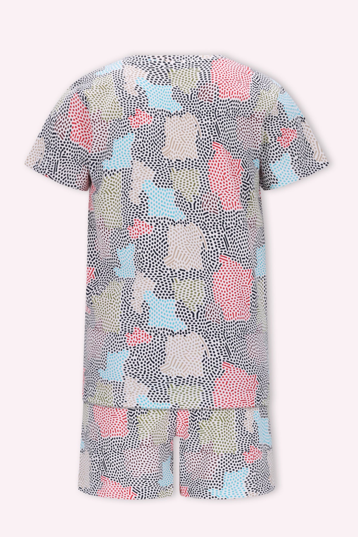 Heerlijke shortama van B.Nosy voor jongens! Deze comfy pyjama is gemaakt van 100% GOTS katoen en heeft een toffe stippenprint in donkerblauw. Perfect om lekker in te relaxen en een goede nachtrust te garanderen. Een must-have voor elke jongen!
